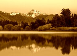 Edytor tapety: Widok znad jeziora Ashburton Lakes na ośnieżone góry Mount D Archaic