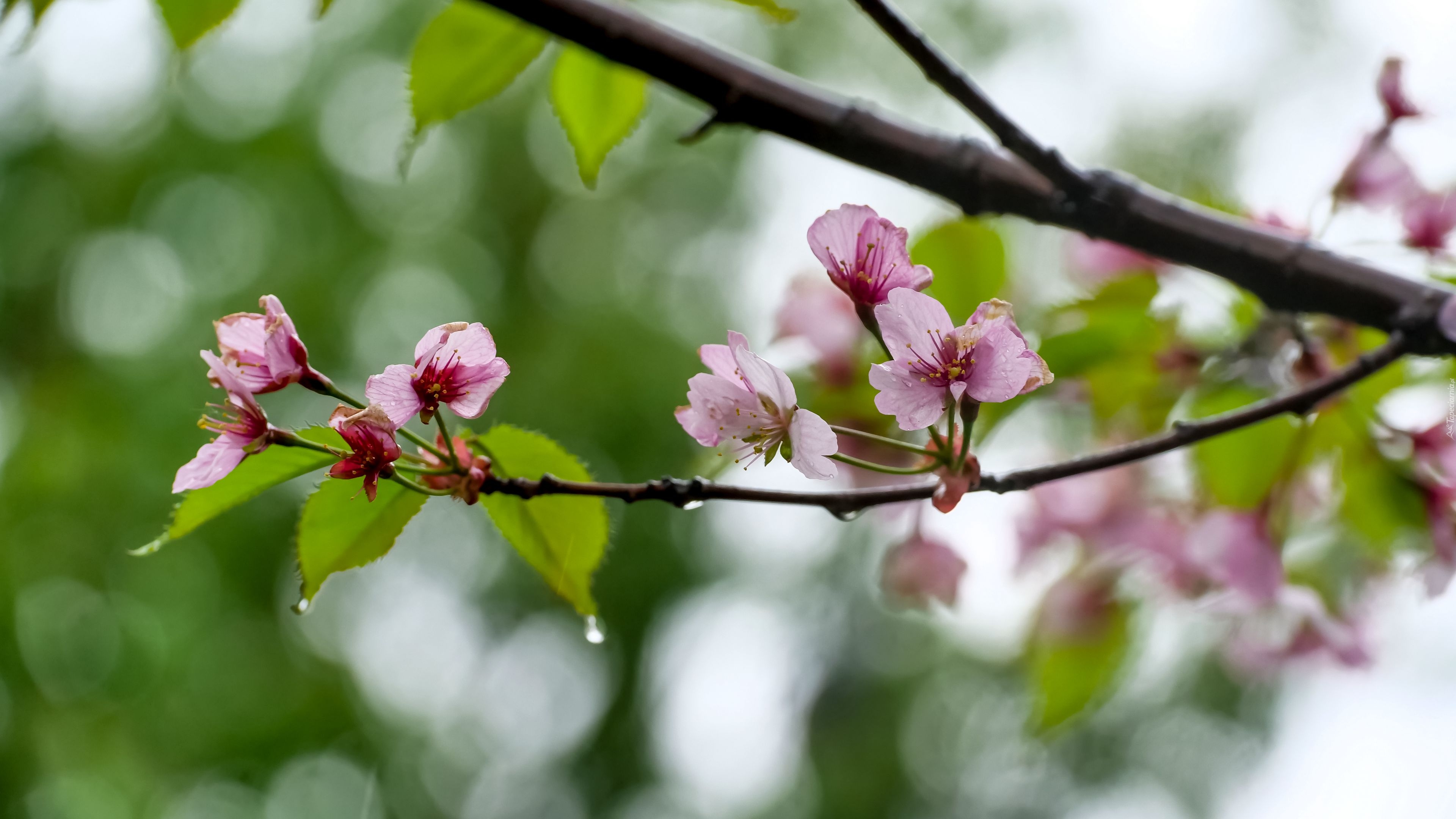 Edytor tapety: Krople na gałązkach z kwiatami wiśni