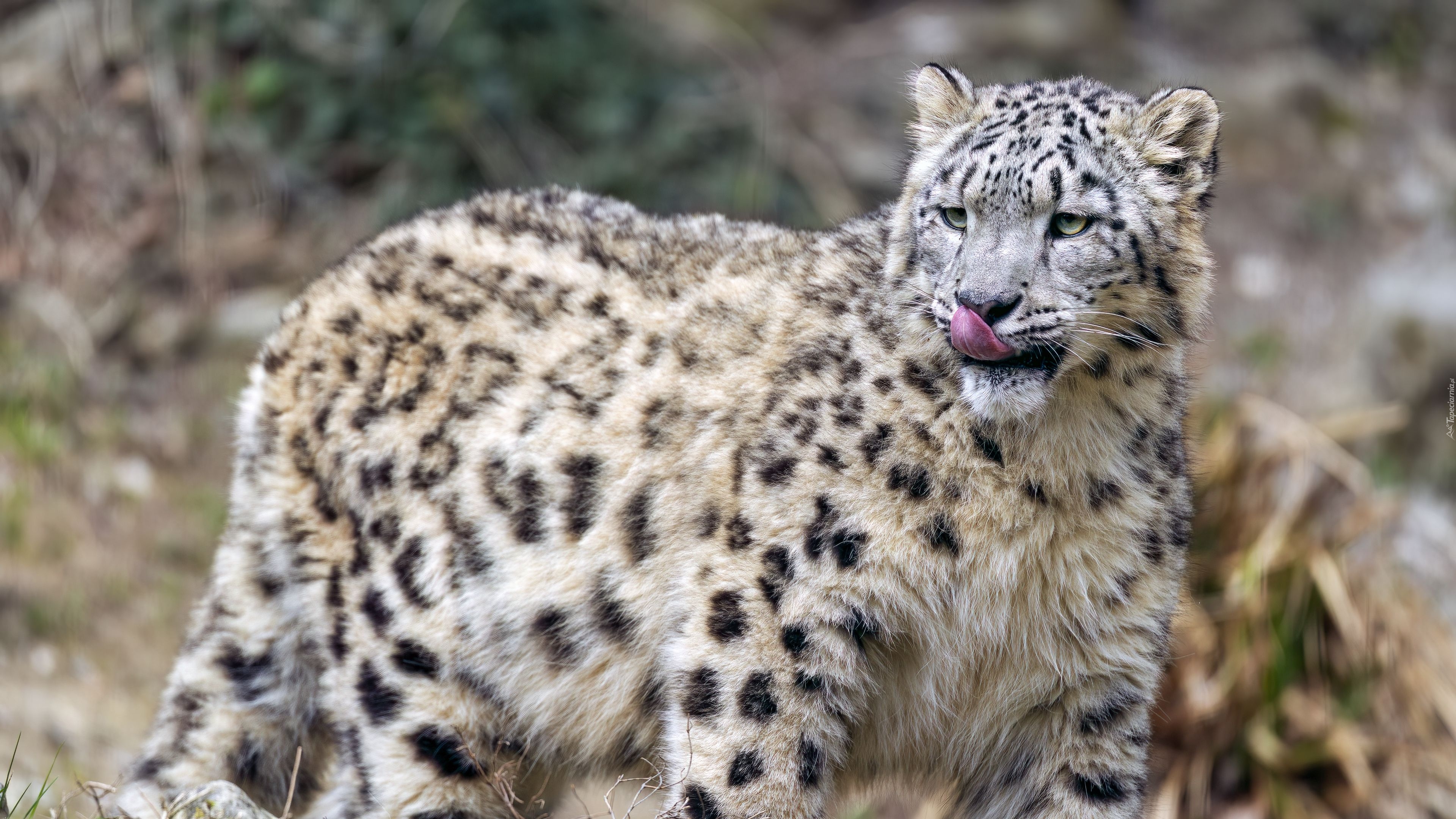 Edytor tapety: Oblizujący się irbis śnieżny
