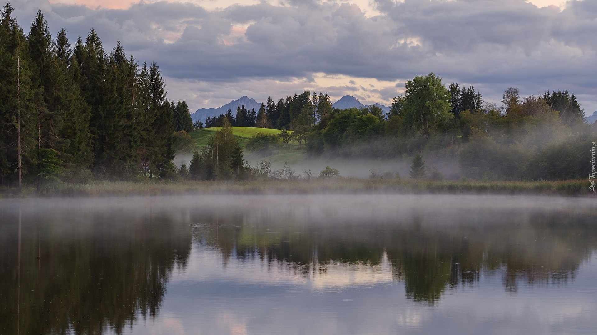 Edytor tapety: Mgła unosząca się nad górskim jeziorem