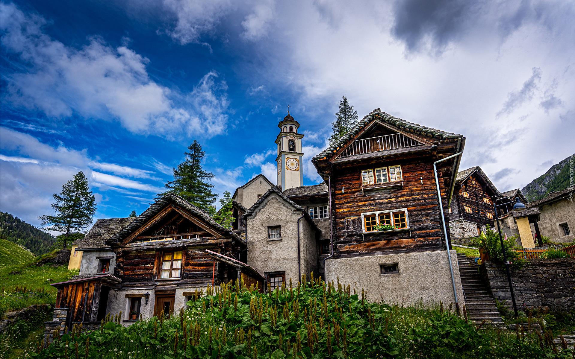 Edytor tapety: Domy przy schodach na wzgórzu