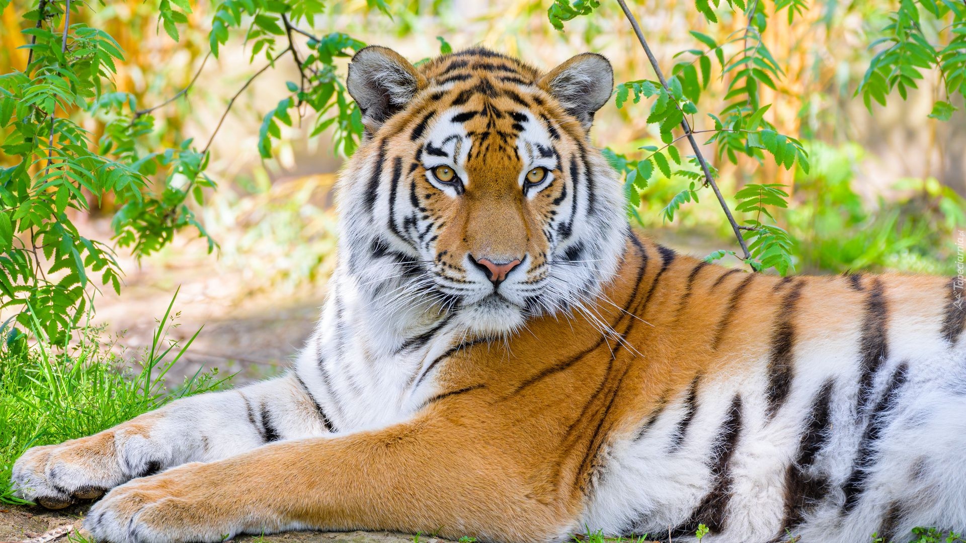 Edytor tapety: Tygrys syberyjski leżący pod gałęziami