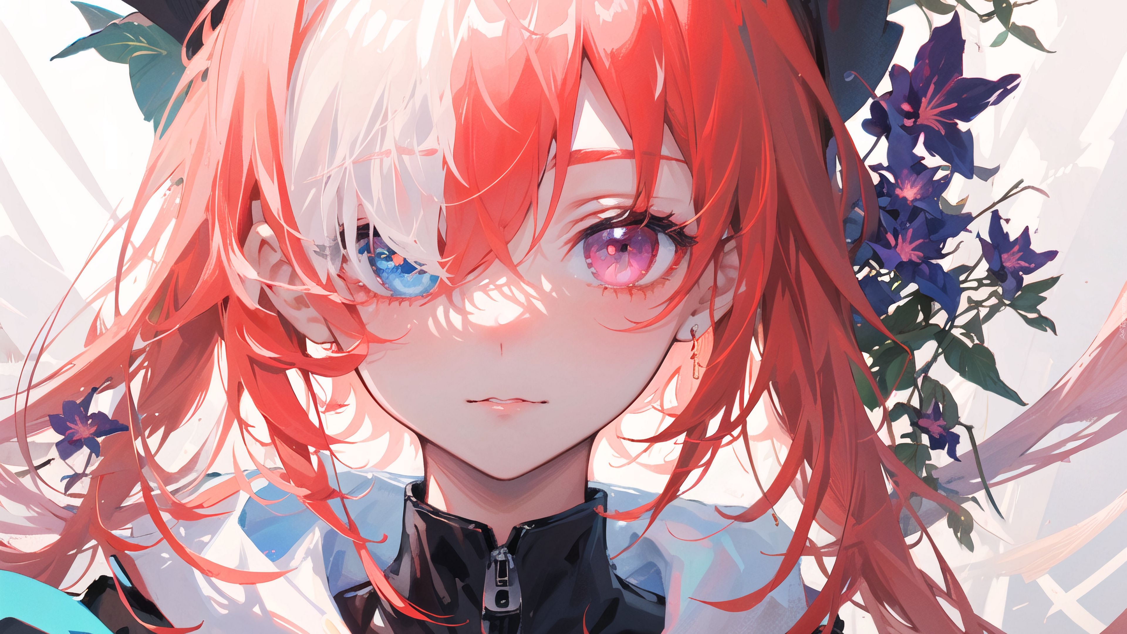 Edytor tapety: Rudowłosa dziewczyna z kolorowymi oczami w anime