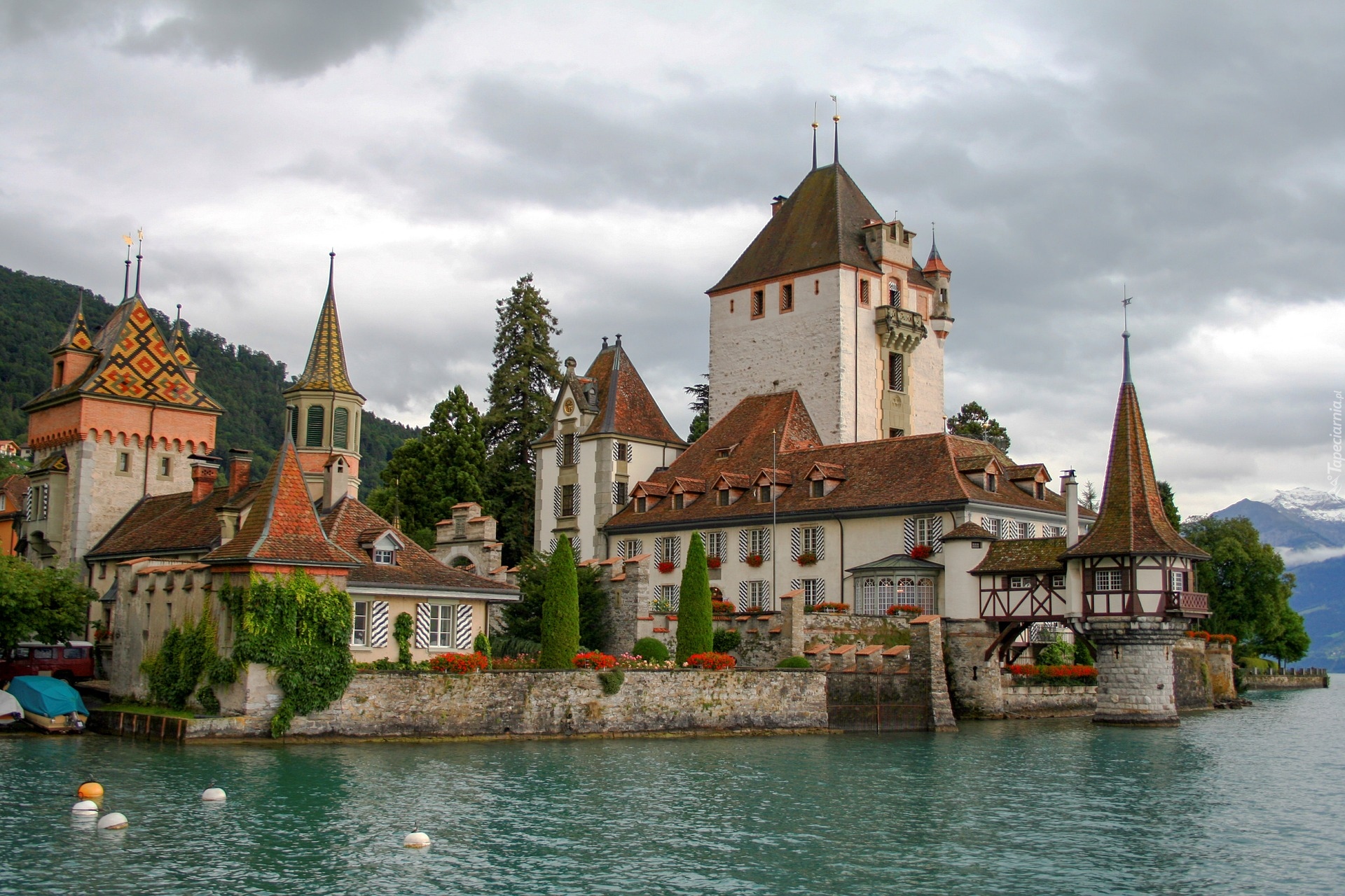 Edytor tapety: Oberhofen Castle nad jeziorem Thun w Szwajcarii