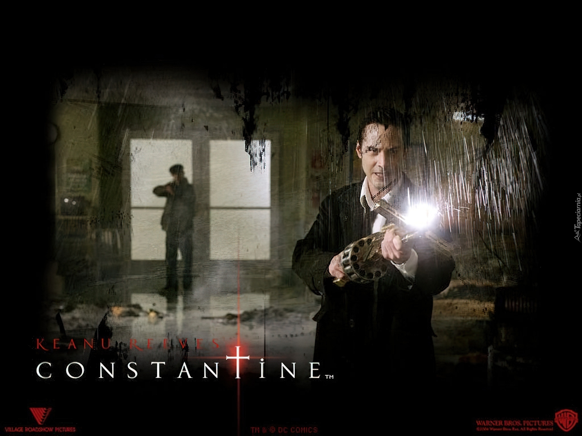 Edytor tapety: Constantine, Keanu Reeves, pistolet, okno
