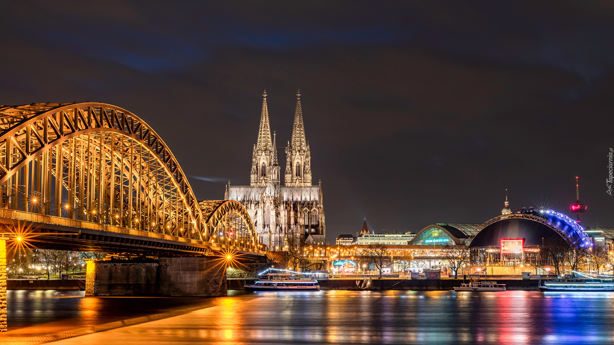 Edytor tapety: Oświetlony most Hohenzollernów nad rzeką Ren w Kolonii