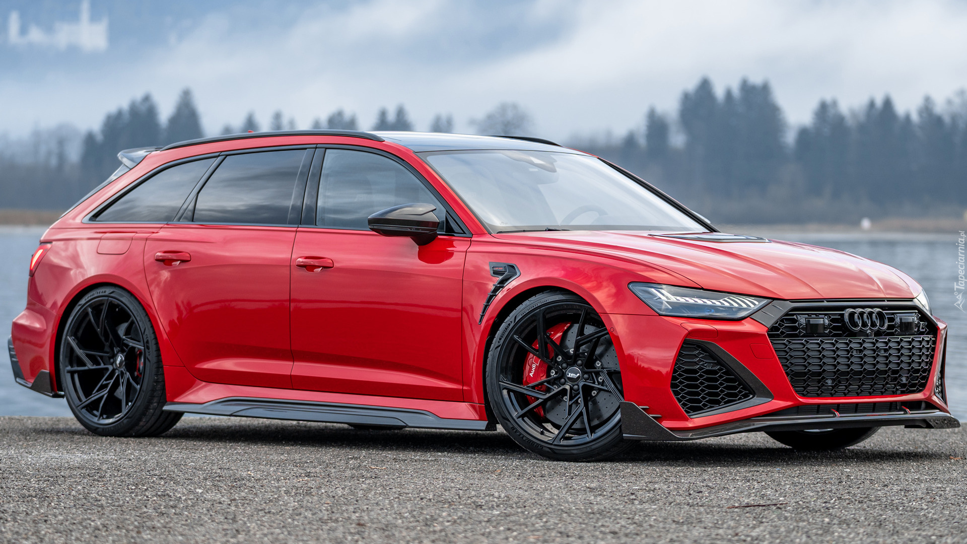 Edytor tapety: Czerwone Audi ABT RS 6 Legacy bokiem
