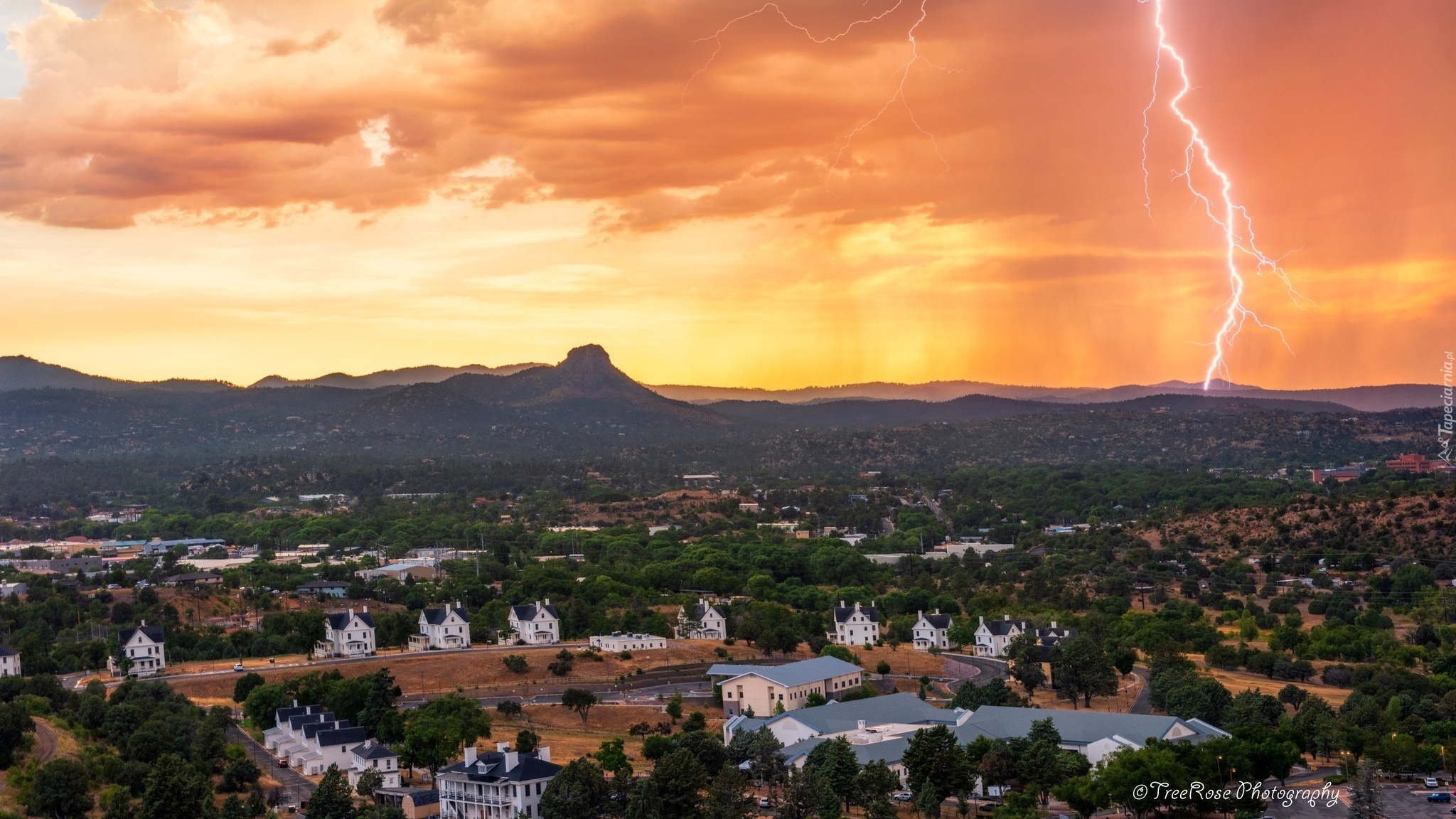 Edytor tapety: Błyskawice na pomarańczowym niebie nad Prescott