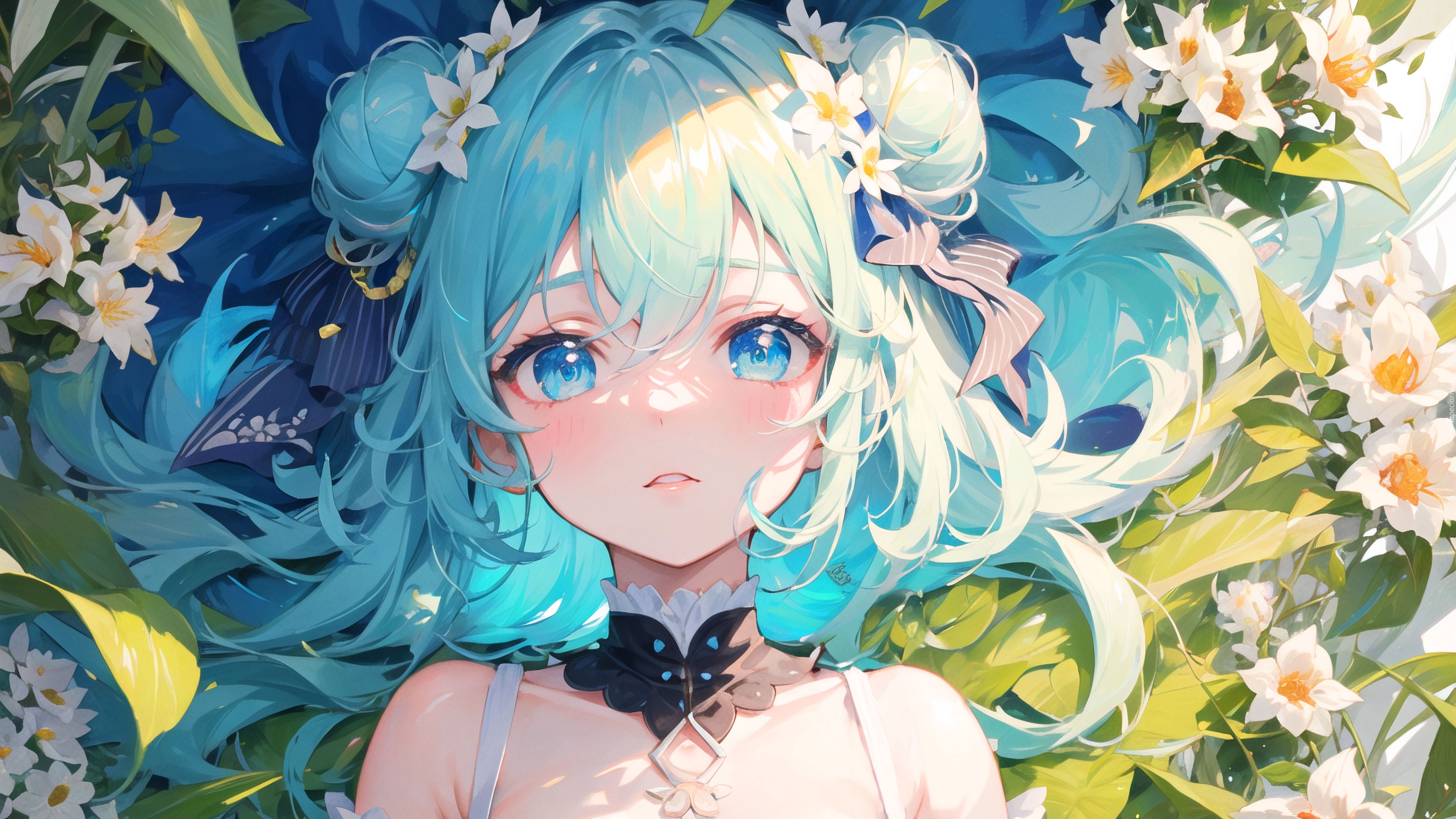 Edytor tapety: Długowłosa dziewczyna wśród kwiatów w anime