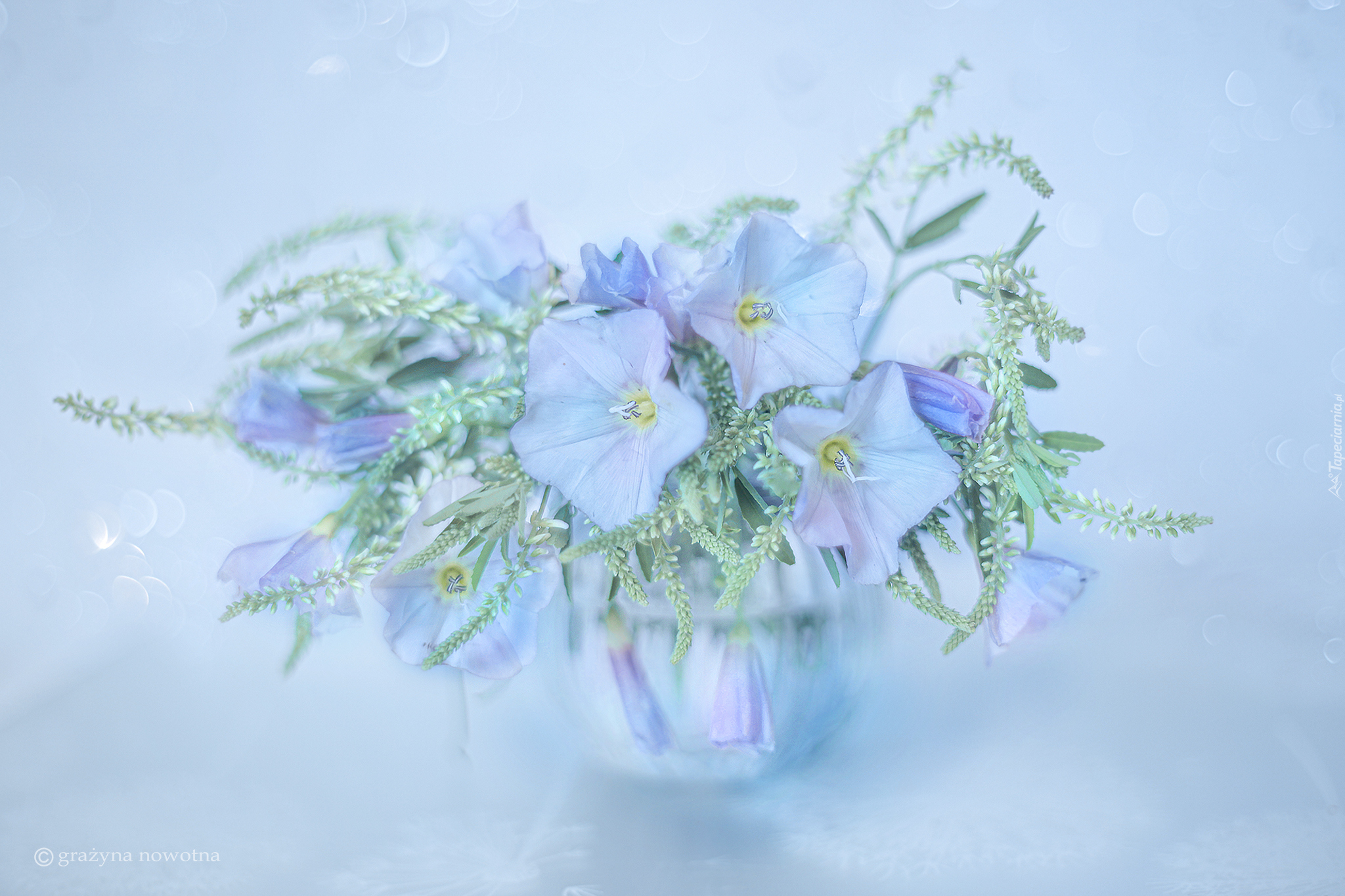 Edytor tapety: Niebieski powój w szklanym naczyniu