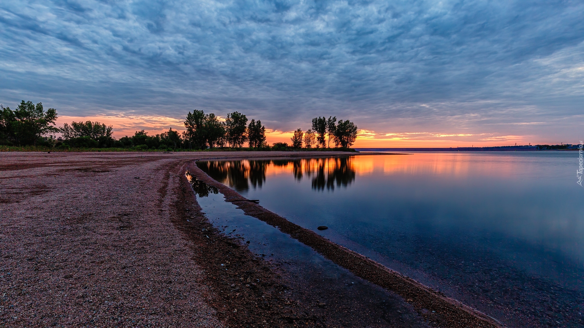 Edytor tapety: Chmury i kolorowe niebo nad jeziorem Chatfield Lake