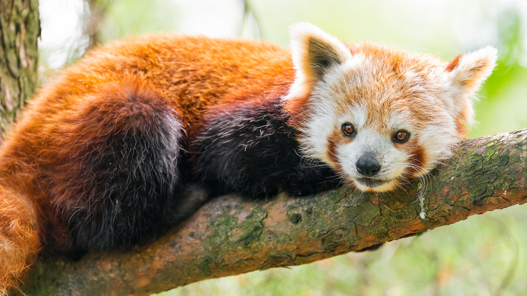 Edytor tapety: Pandka ruda na gałęzi