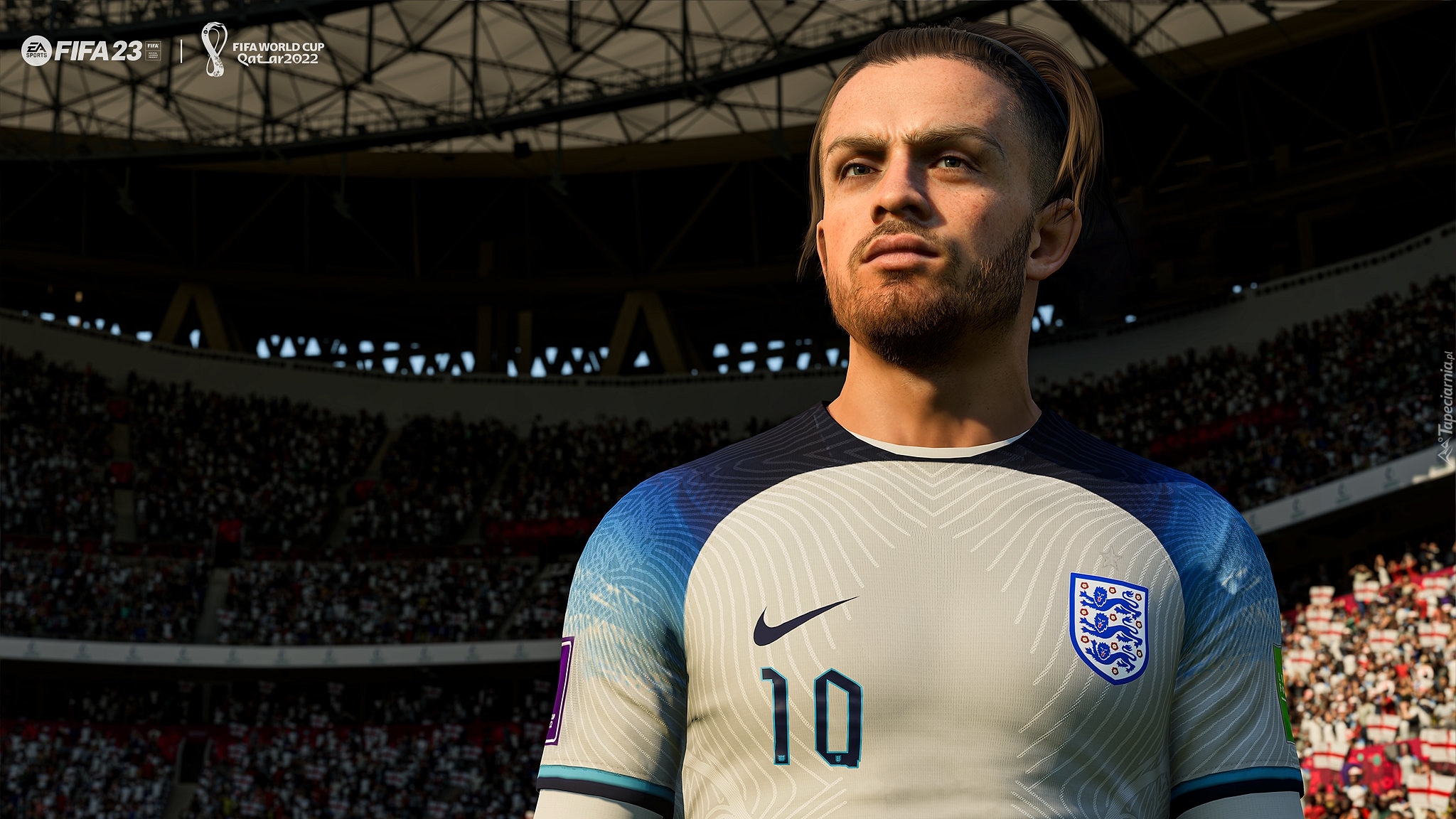 Edytor tapety: Piłkarz na tle stadionu z gry FIFA 23