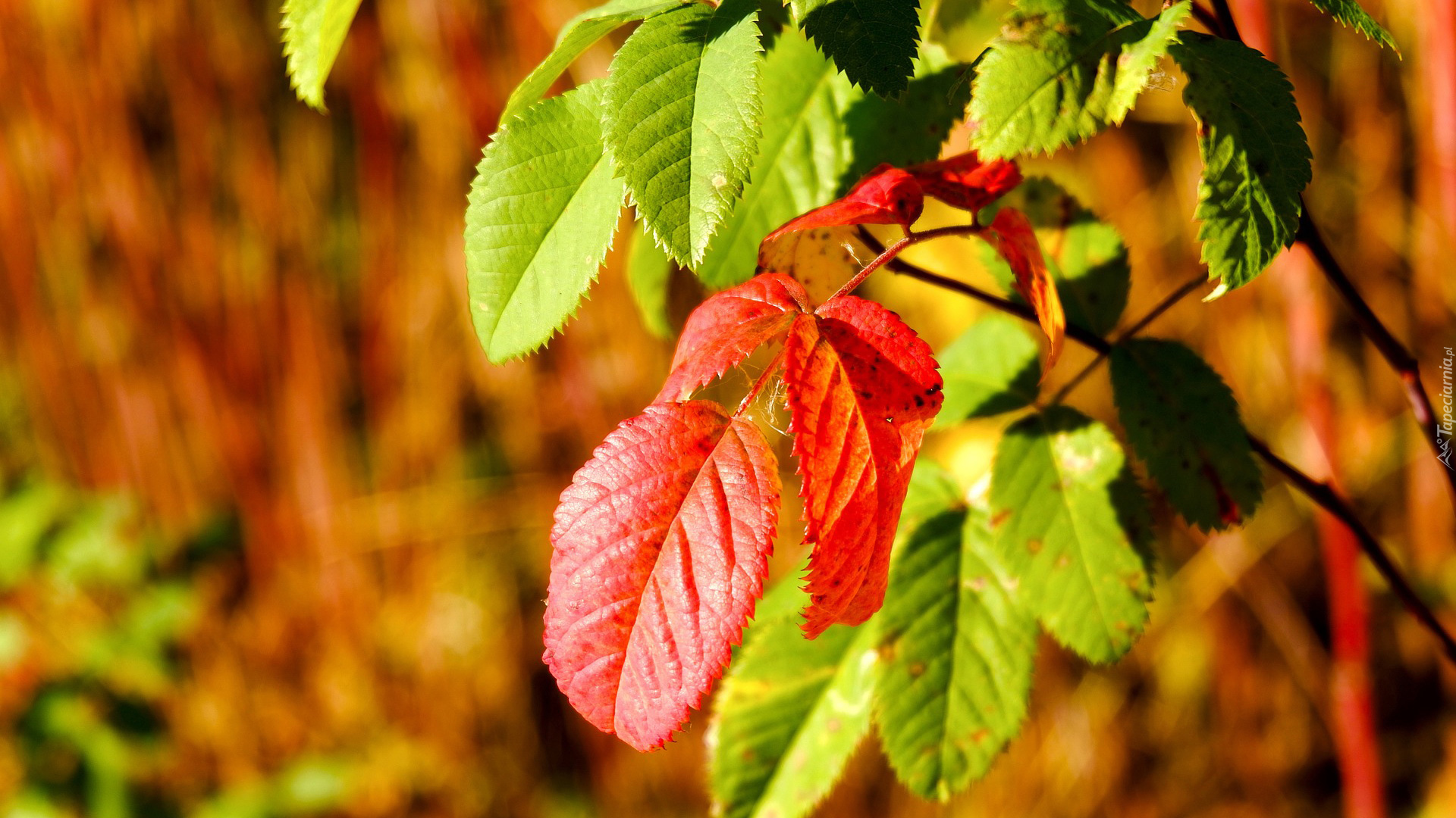 Edytor tapety: Gałązka z zielonymi i czerwonymi liśćmi