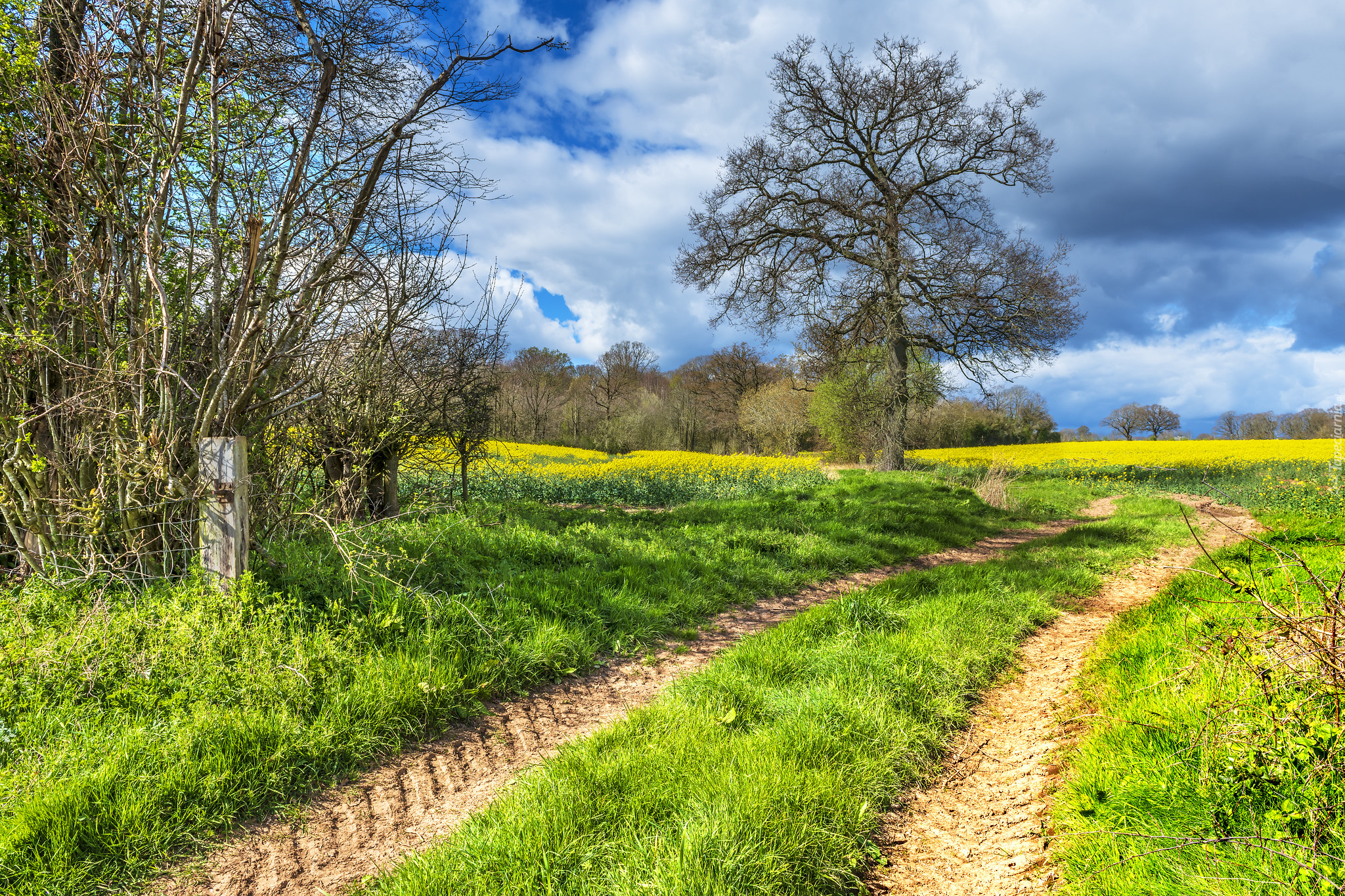 Edytor tapety: Drzewa przy polnej drodze latem