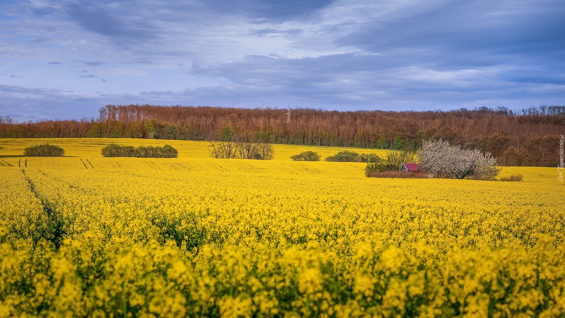 Edytor tapety: Dom na polu rzepaku