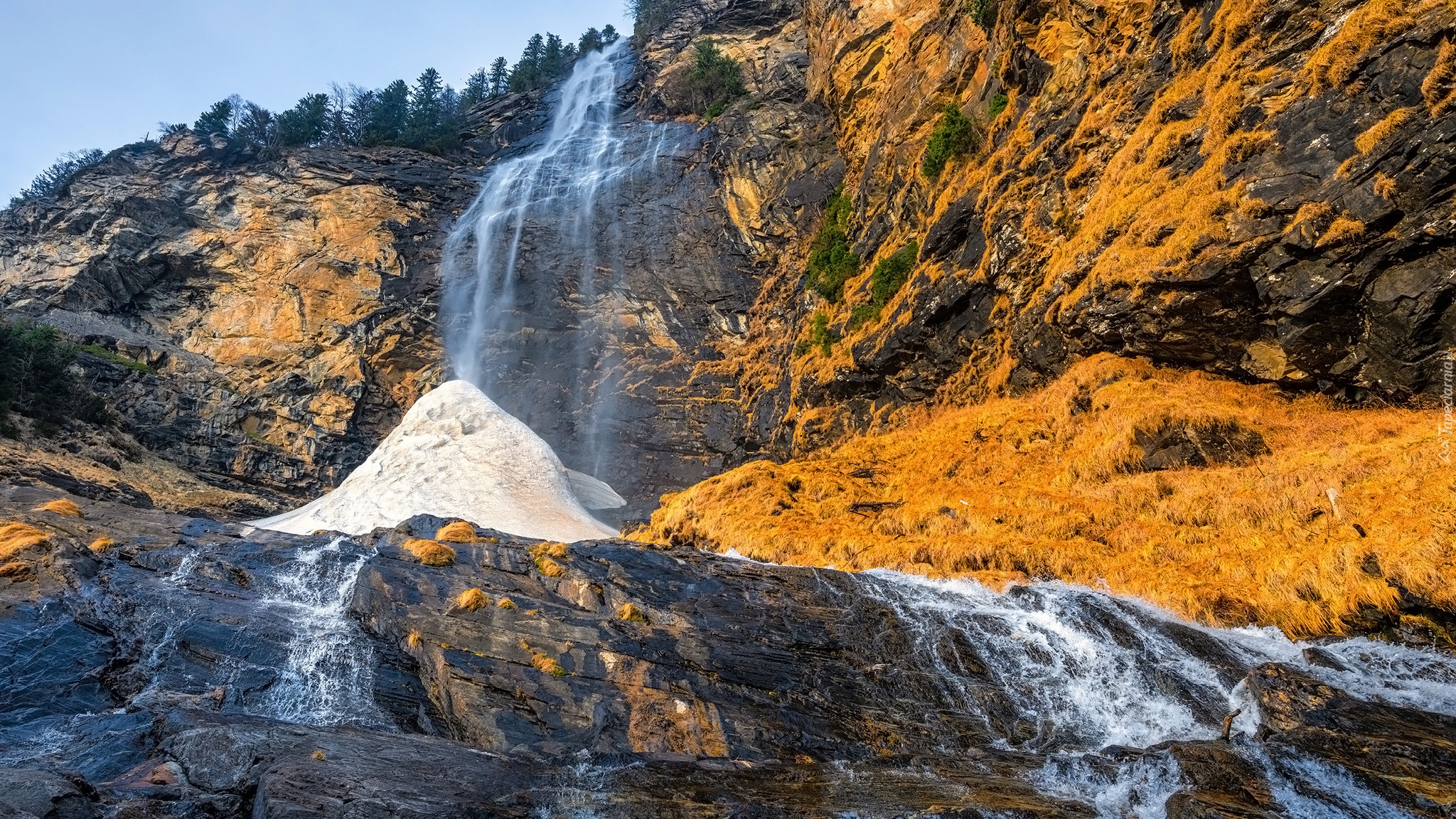 Edytor tapety: Woda z wodospadu spływająca po skałach