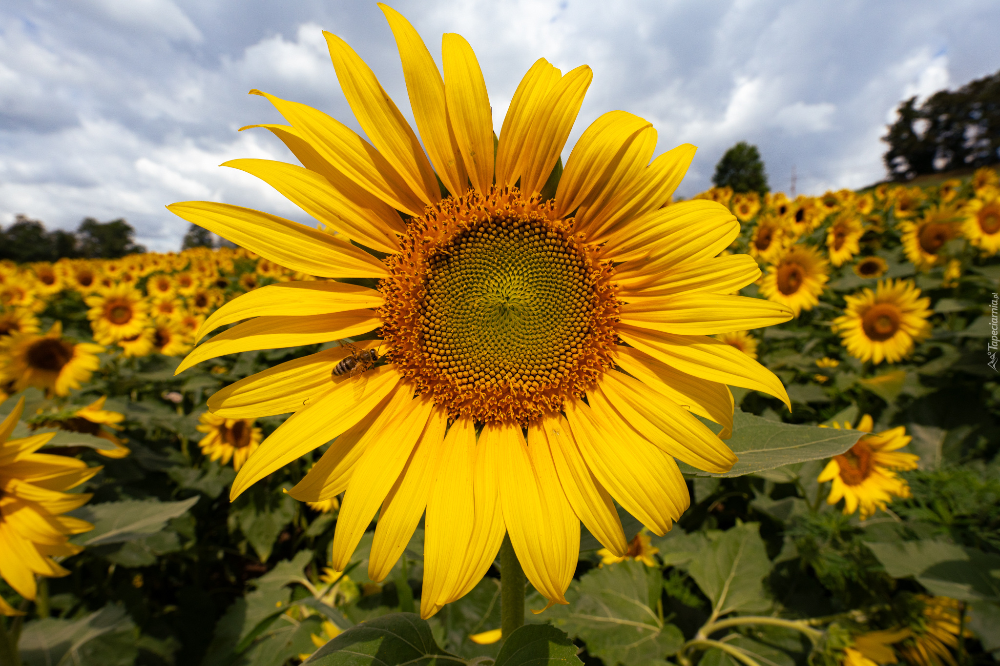 Edytor tapety: Kwiat słonecznika na polu w zbliżeniu