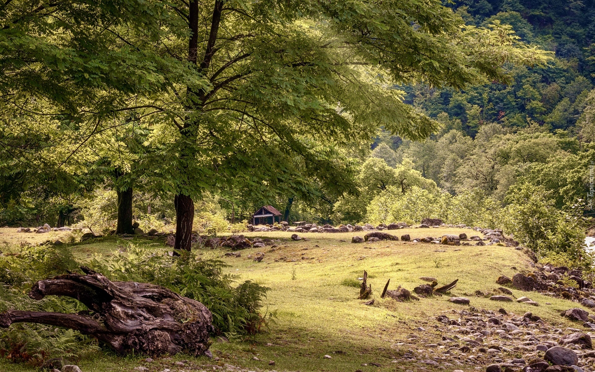 Edytor tapety: Paprocie pod zielonym drzewem