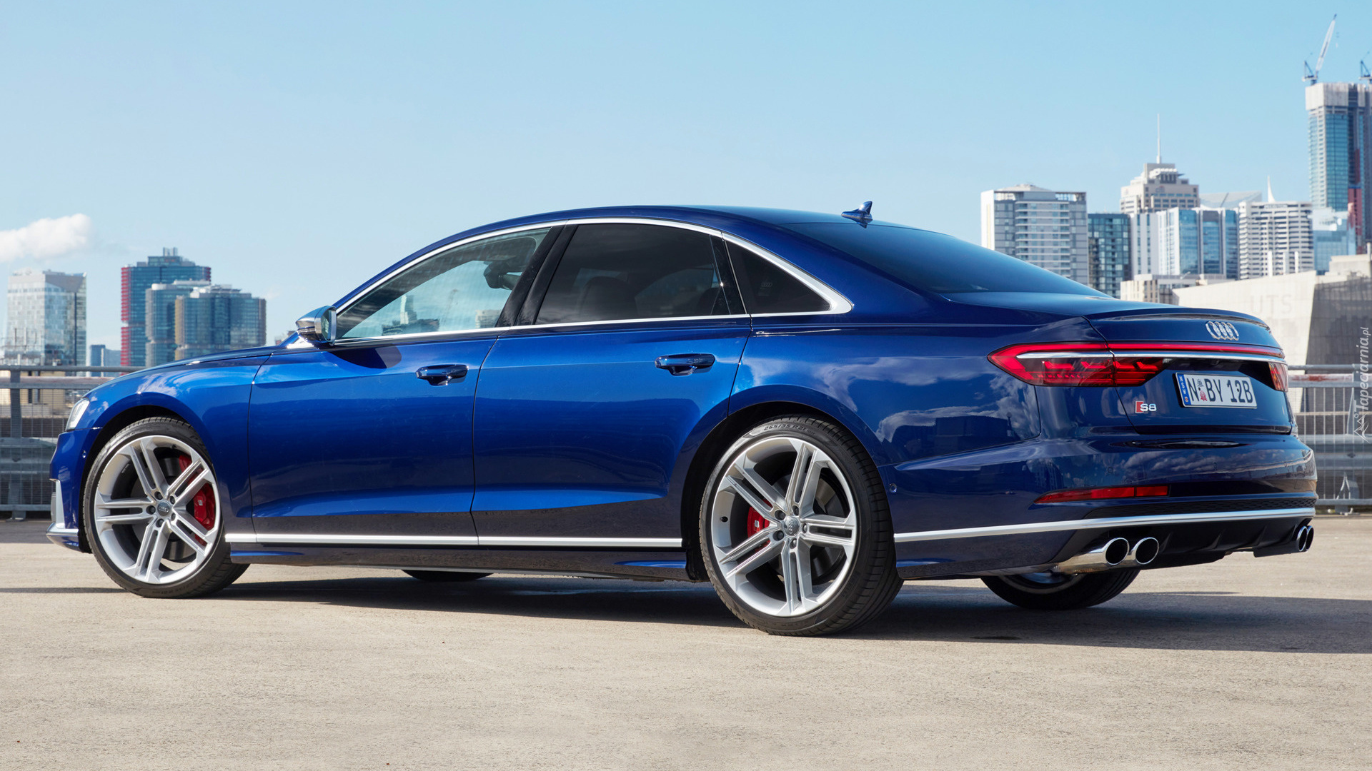 Edytor tapety: Niebieskie Audi S8 bokiem
