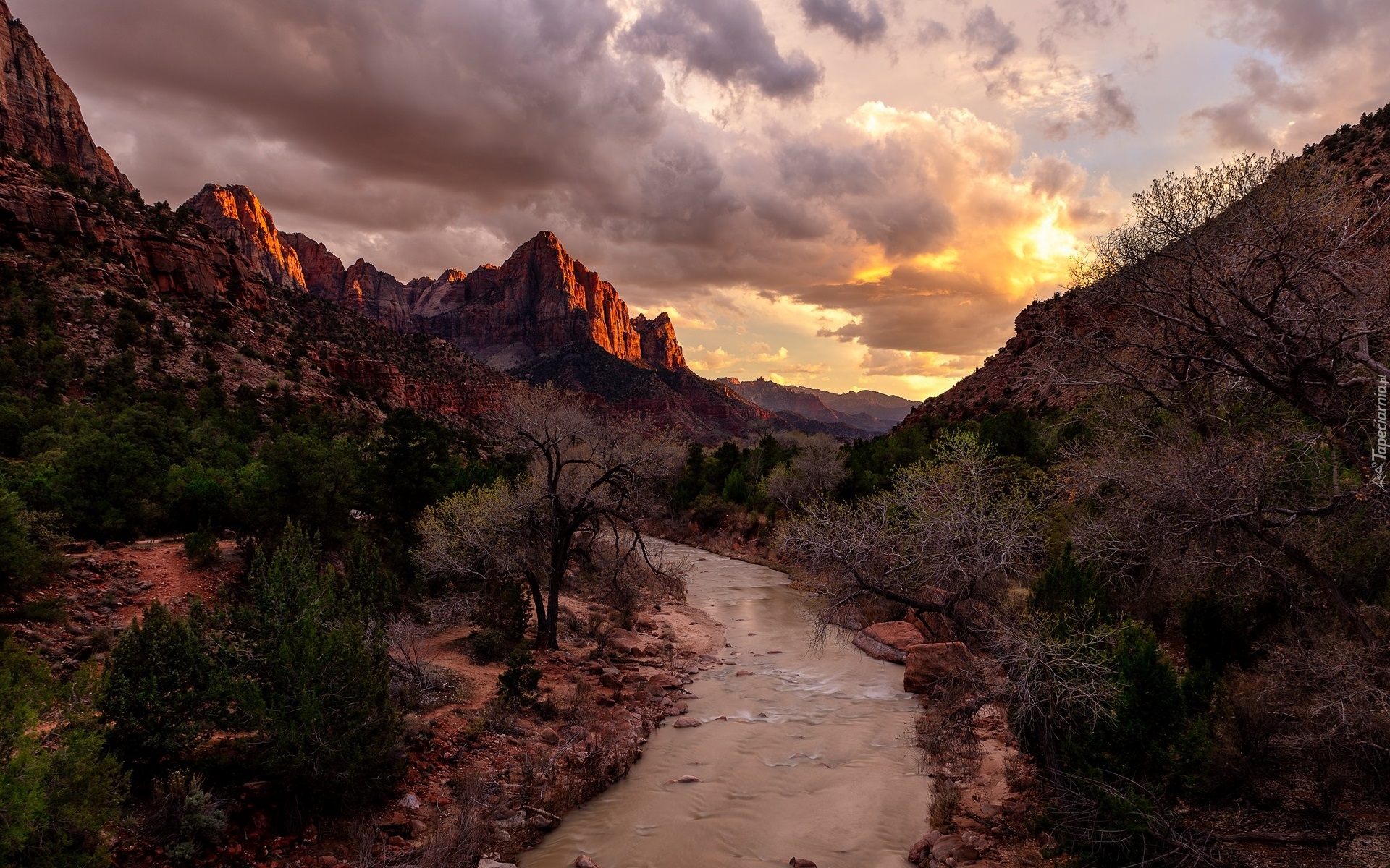 Edytor tapety: Chmury nad górą Watchman w Parku Narodowym Zion