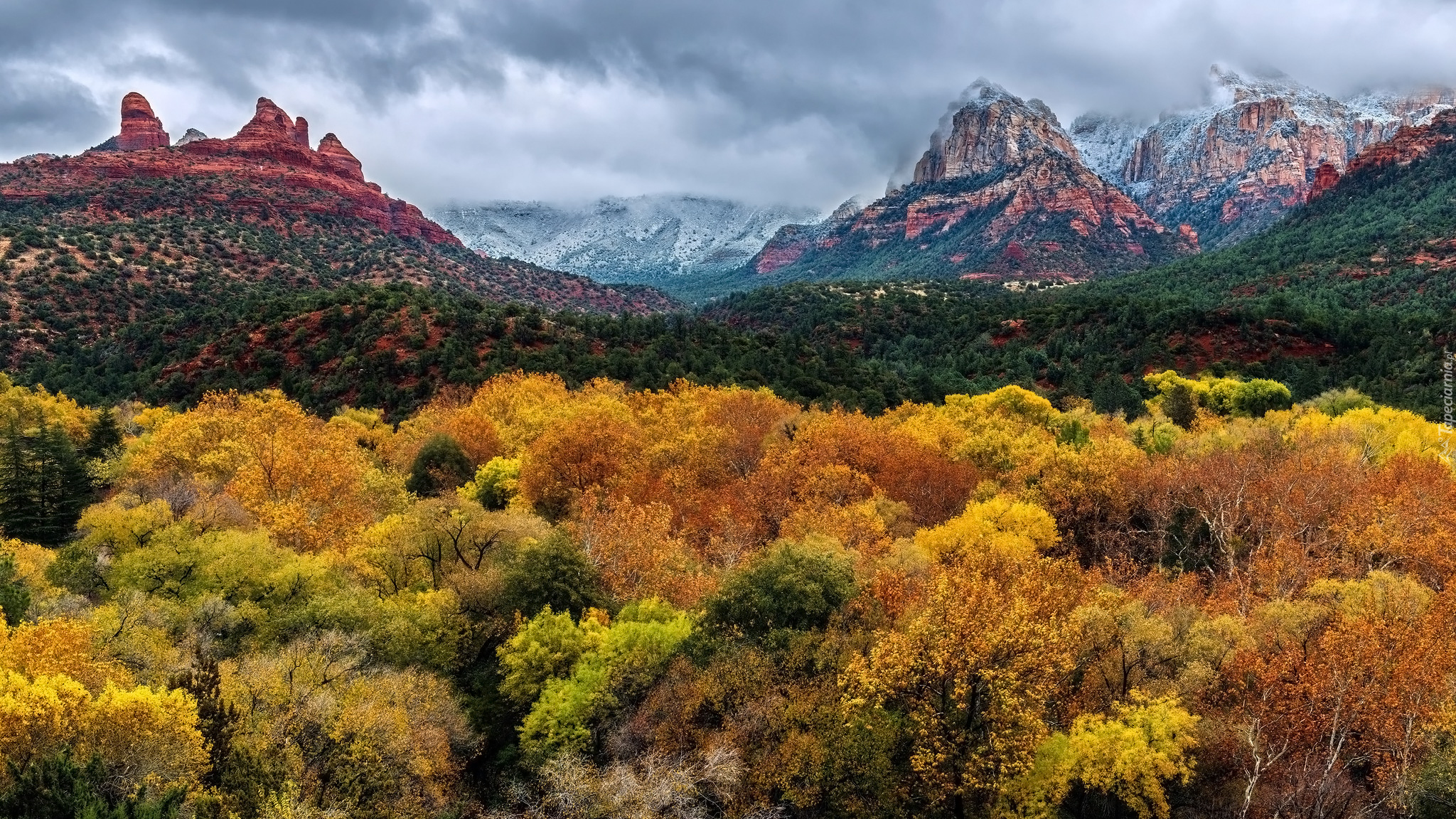 Edytor tapety: Góry i jesienne drzewa w Stanie Wisconsin