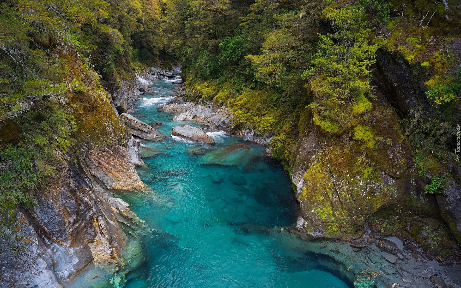 Edytor tapety: Wąwóz rzeki Makarora River w Nowej Zelandii