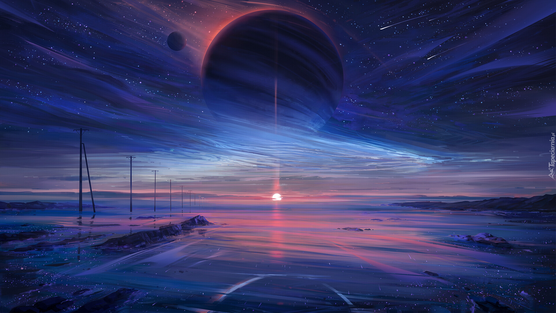 Edytor tapety: Planety i zachód słońca w grafice