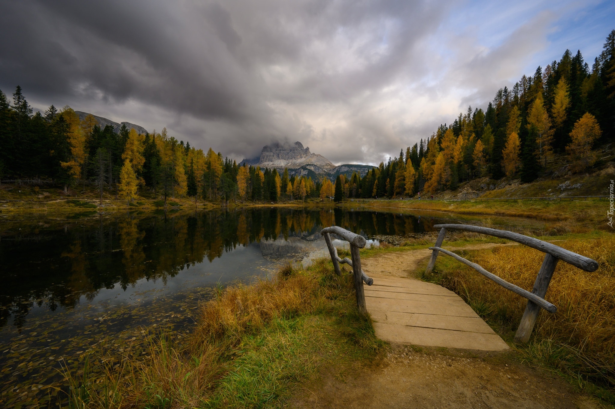 Edytor tapety: Jezioro Antorno Lake i ciemne chmury nad Dolomitami