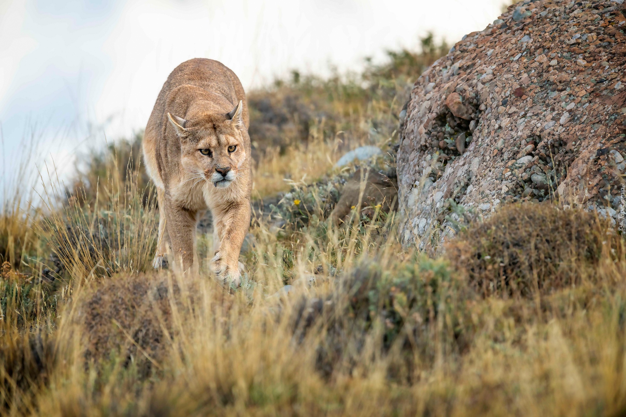 Edytor tapety: Puma obok kamieni