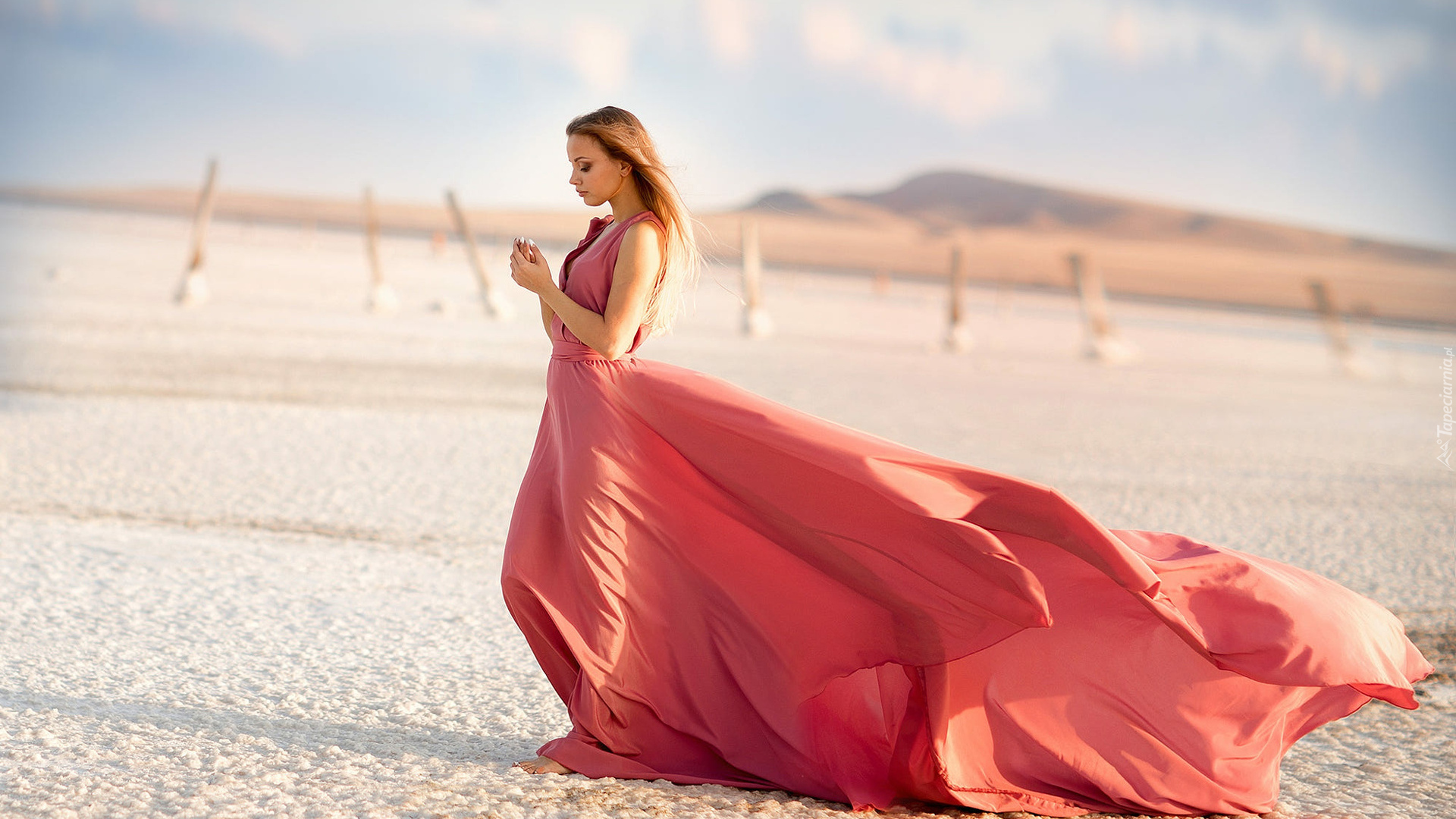 Edytor tapety: Kobieta w długiej sukni na plaży