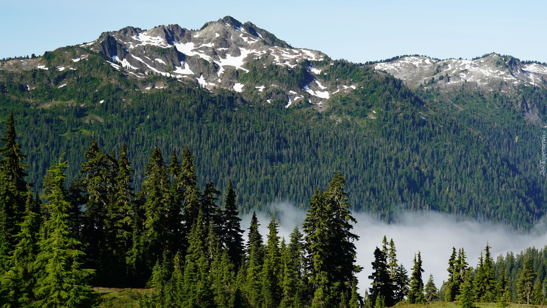 Edytor tapety: Zalesione góry i mgła w dolinie