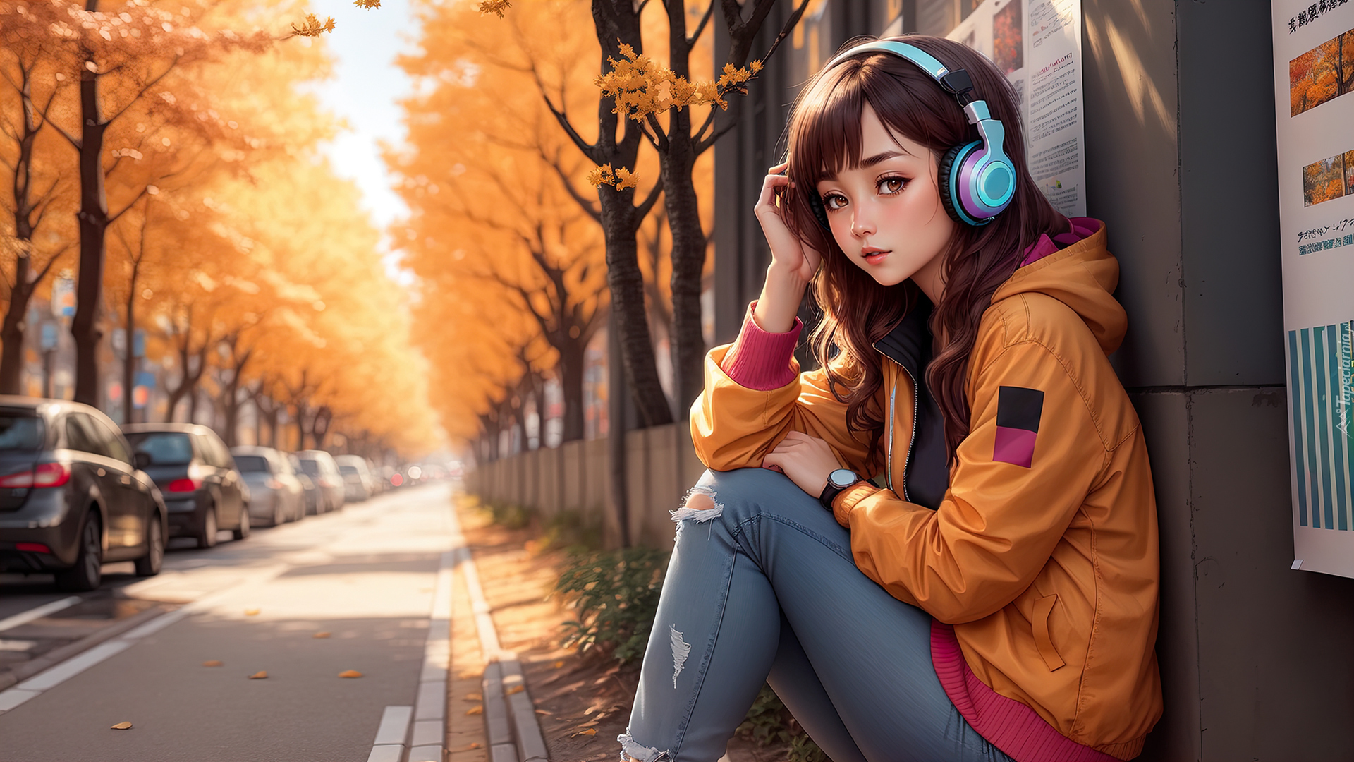 Edytor tapety: Dziewczyna ze słuchawkami przy ulicy