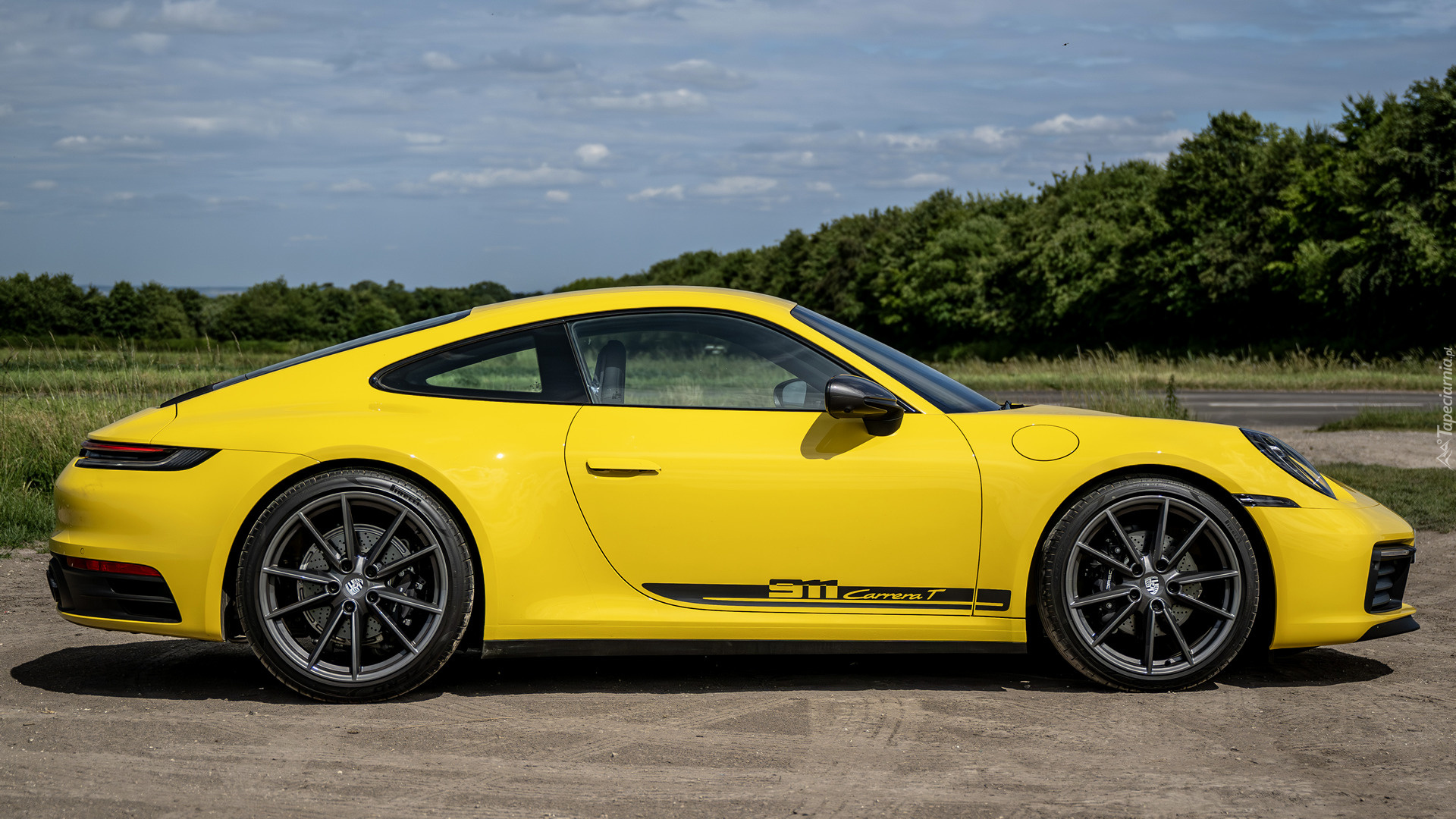 Edytor tapety: Żółte Porsche 911 Carrera T bokiem