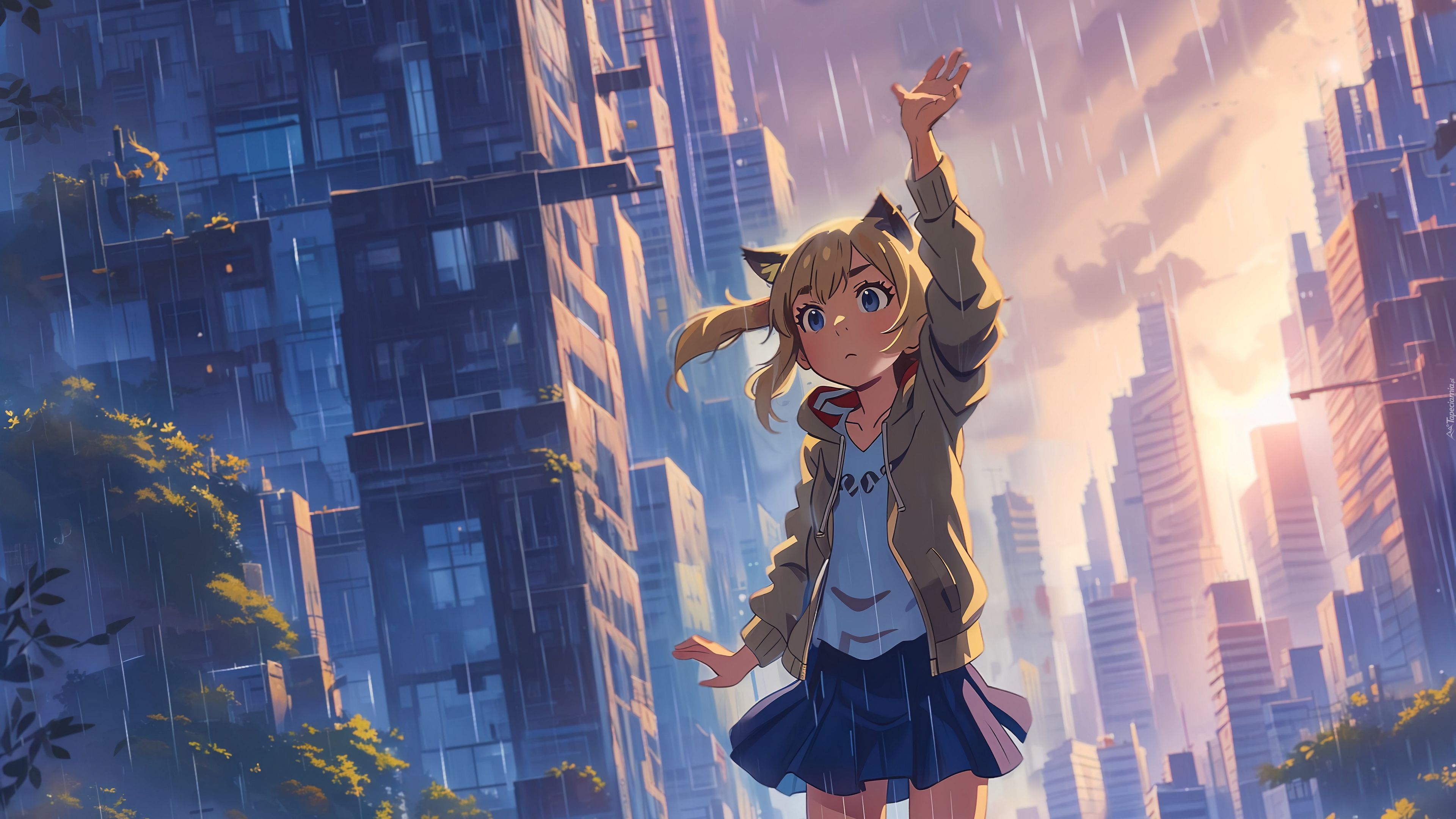 Edytor tapety: Dziewczyna na tle wieżowców w anime