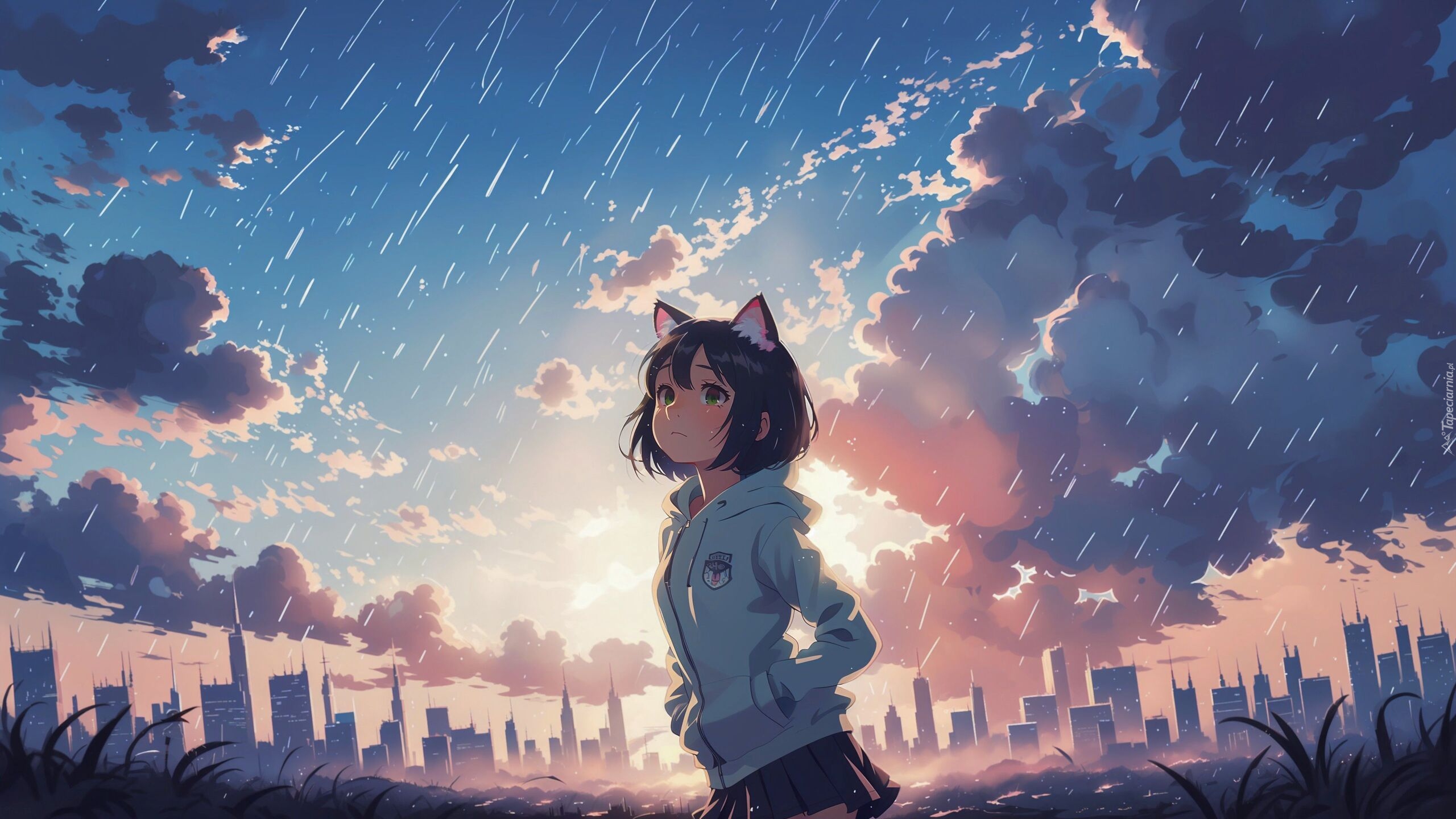 Edytor tapety: Grafika anime z dziewczyną stojącą w deszczu