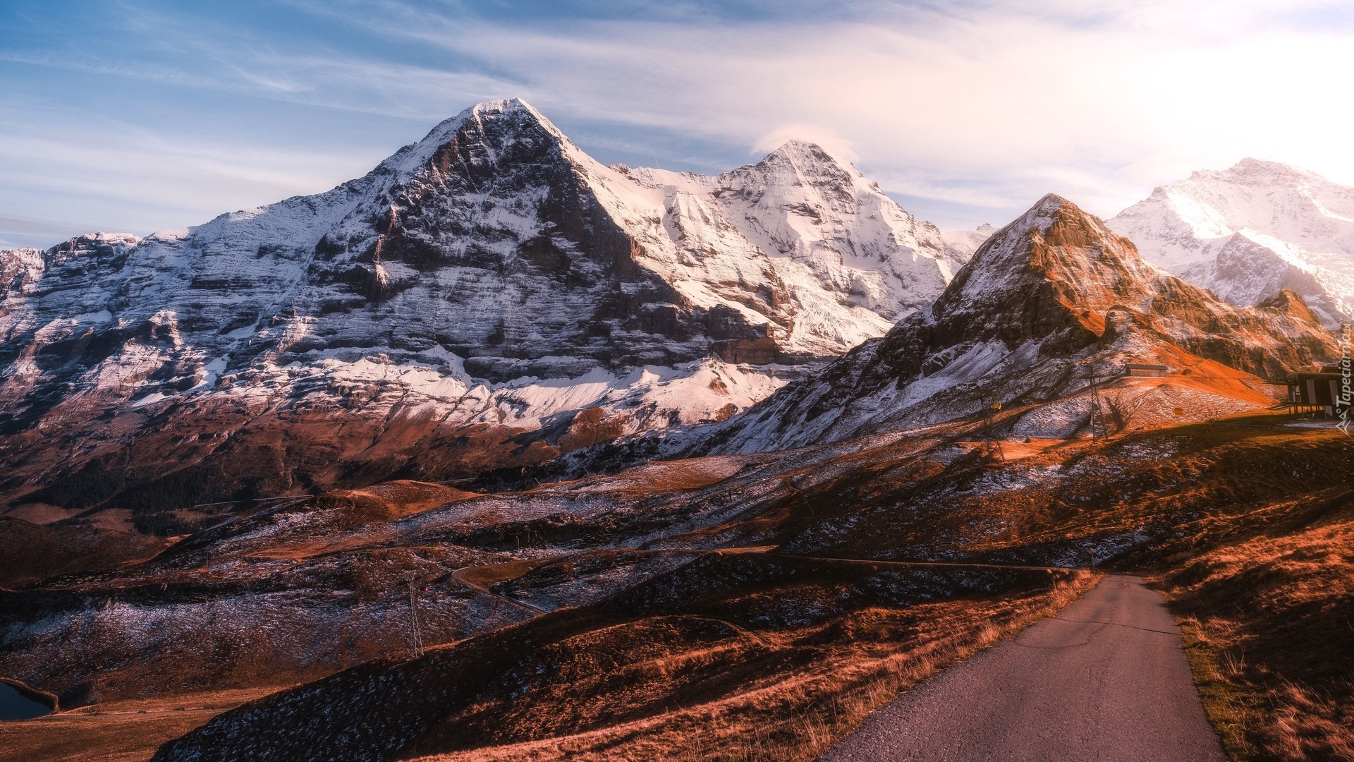 Edytor tapety: Widok z drogi na ośnieżone szczyty gór