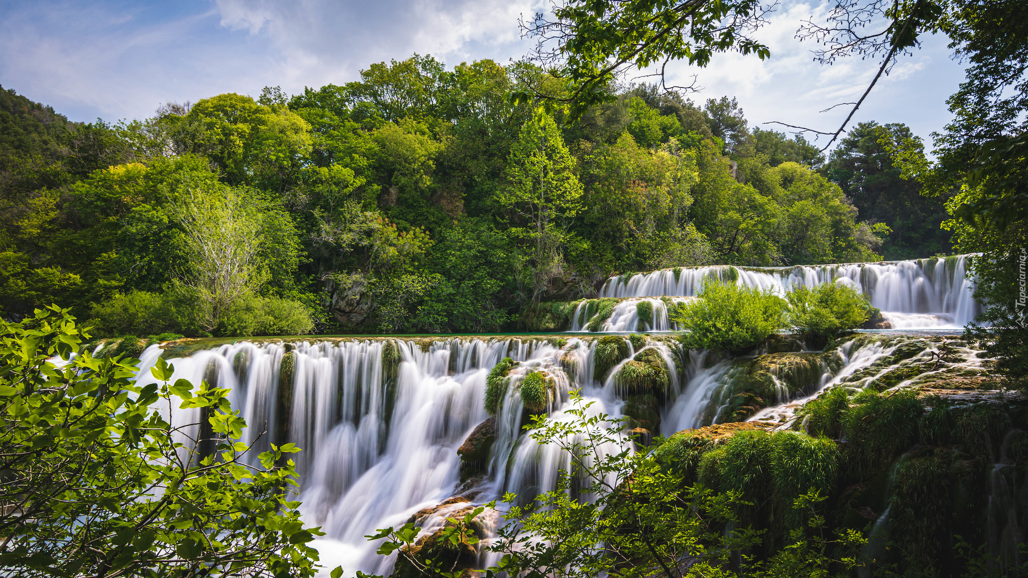Edytor tapety: Drzewa obok wodospadu Skadinski w Chorwacji