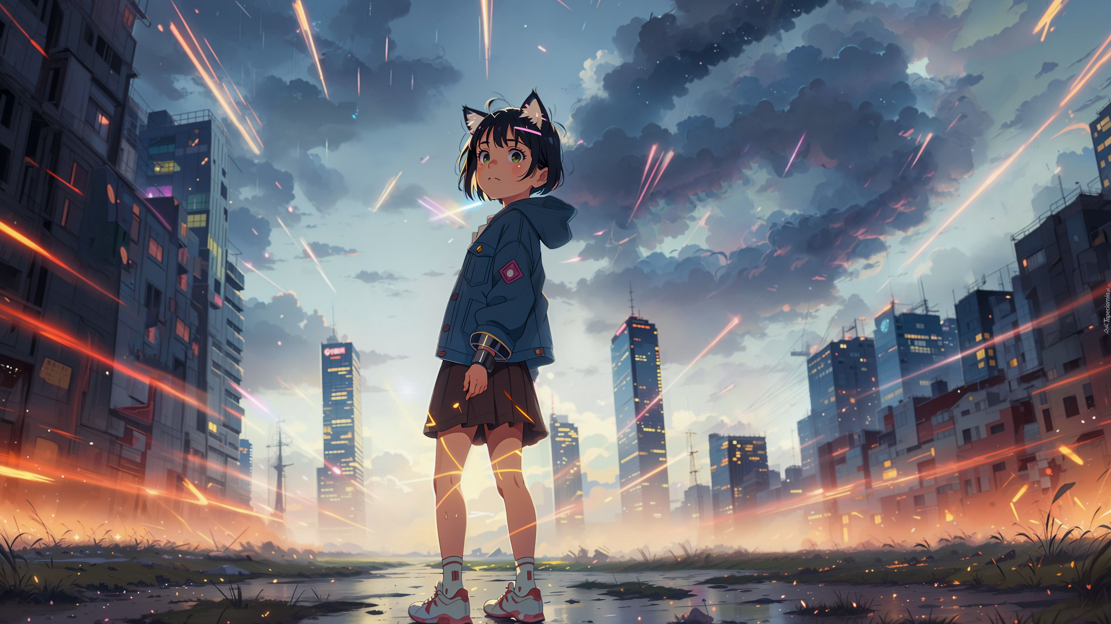 Edytor tapety: Dziewczyna na ulicy na tle wieżowców w anime