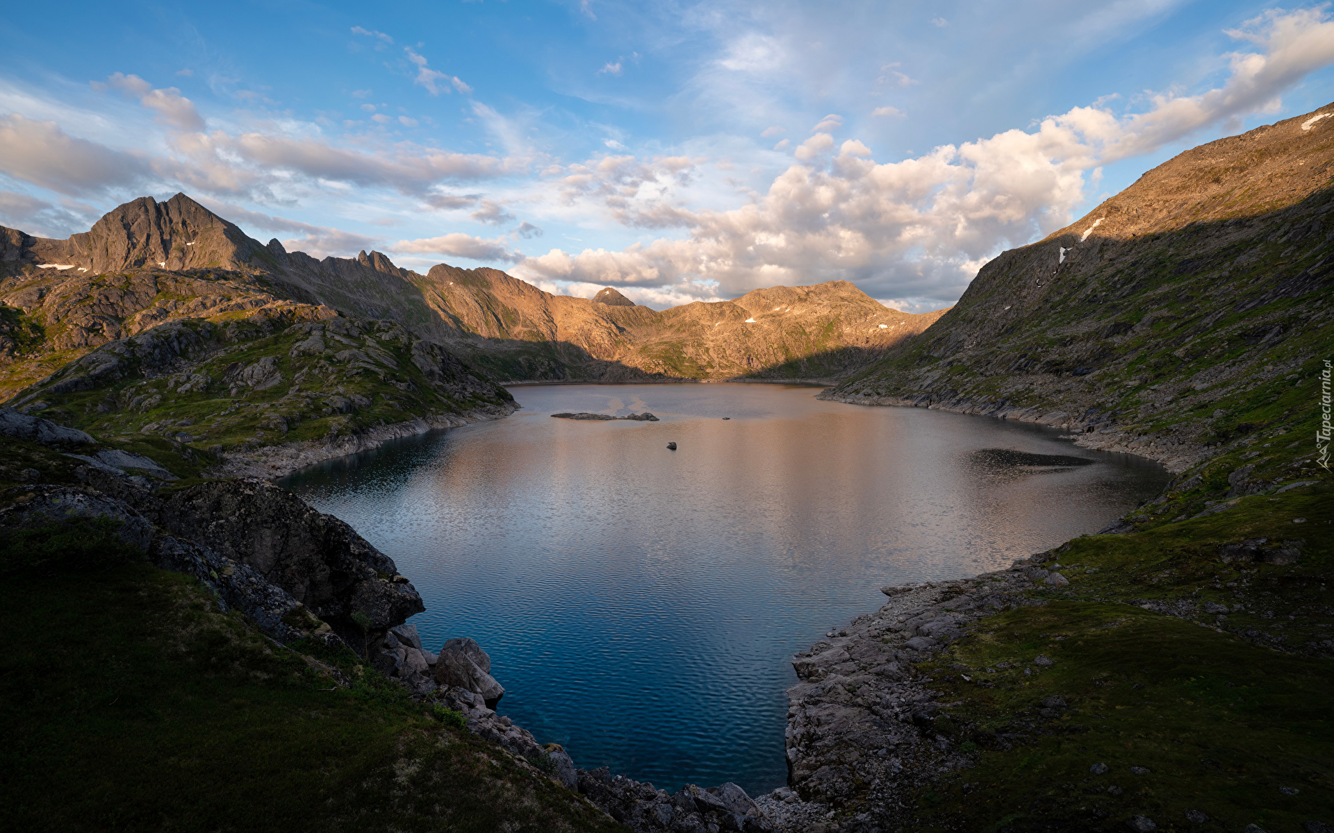 Edytor tapety: Białe chmury nad górskim jeziorem