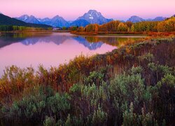 Edytor tapety: Jesienne drzewa nad jeziorem w Parku Narodowym Grand Teton