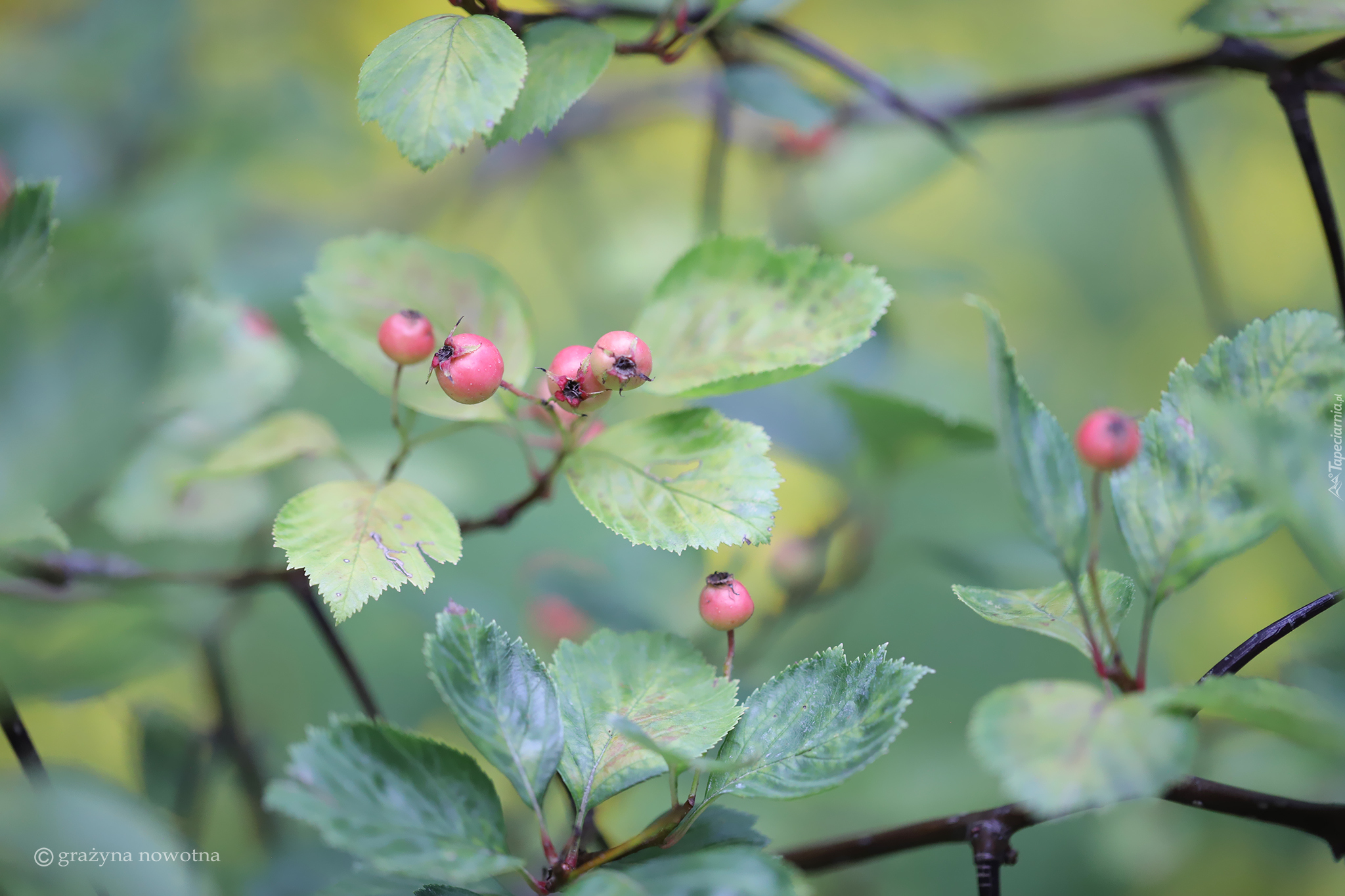 Edytor tapety: Czerwone owoce i liście na krzewie