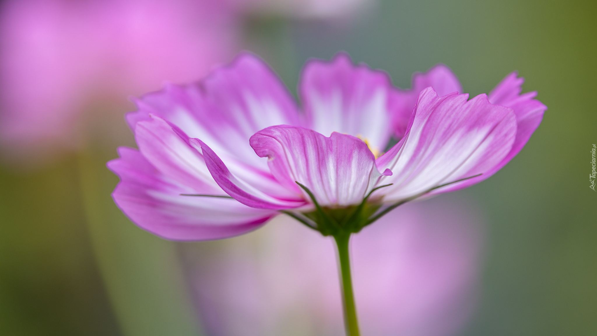 Edytor tapety: Różowa kosmea w zbliżeniu na rozmytym tle