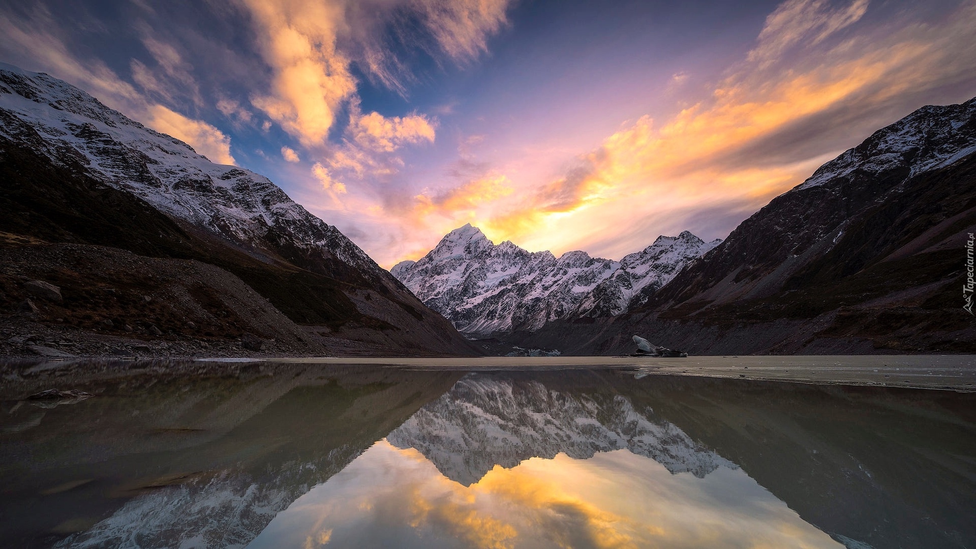 Edytor tapety: Odbicie Góry Cooka w jeziorze