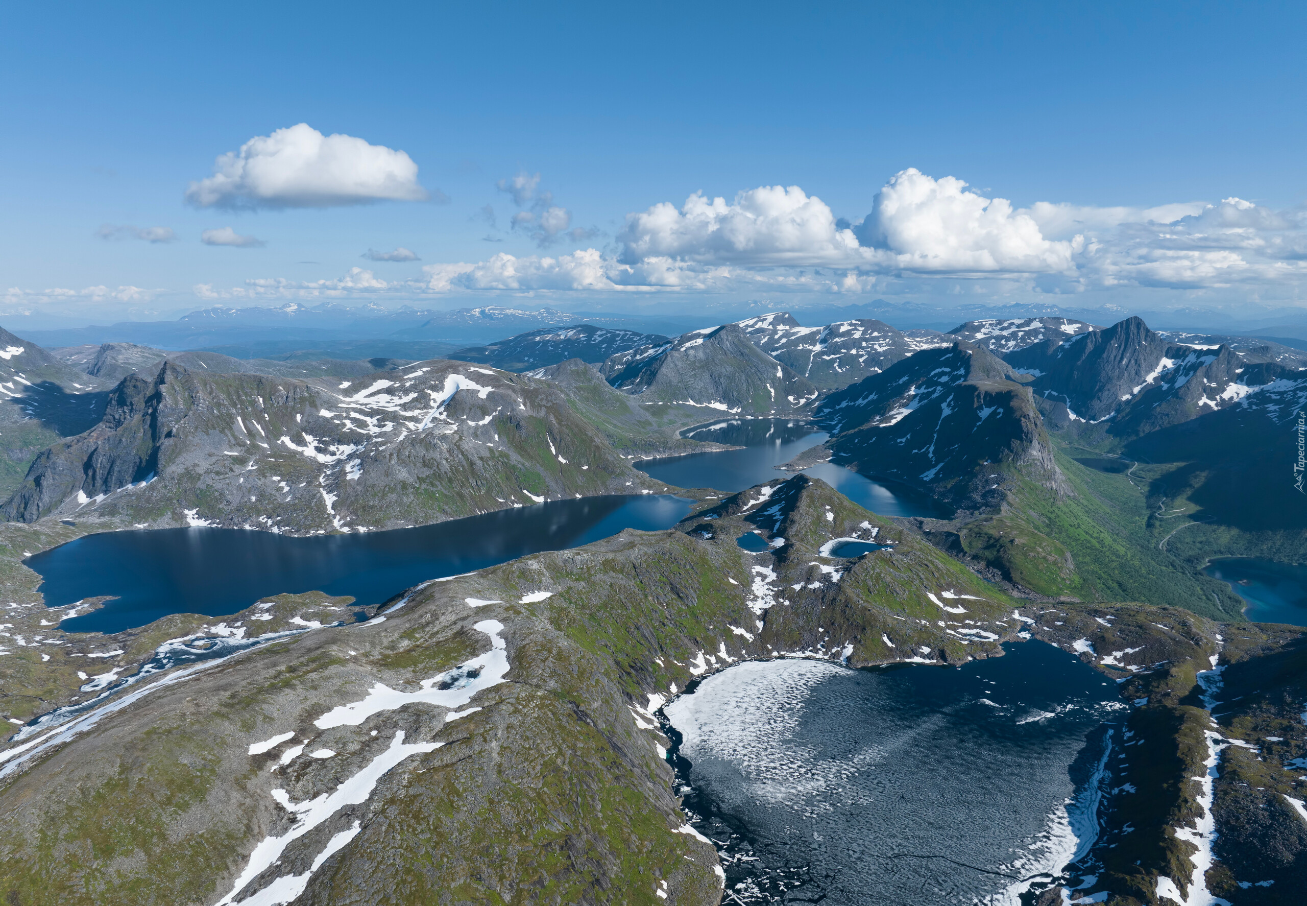 Edytor tapety: Białe obłoki nad jeziorami i górami