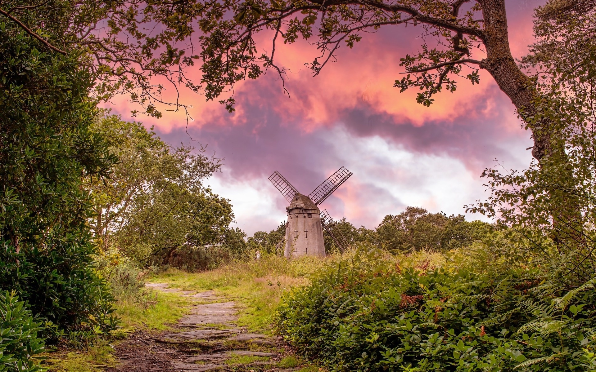 Edytor tapety: Wiatrak i drzewa przy drodze na półwyspie Wirral