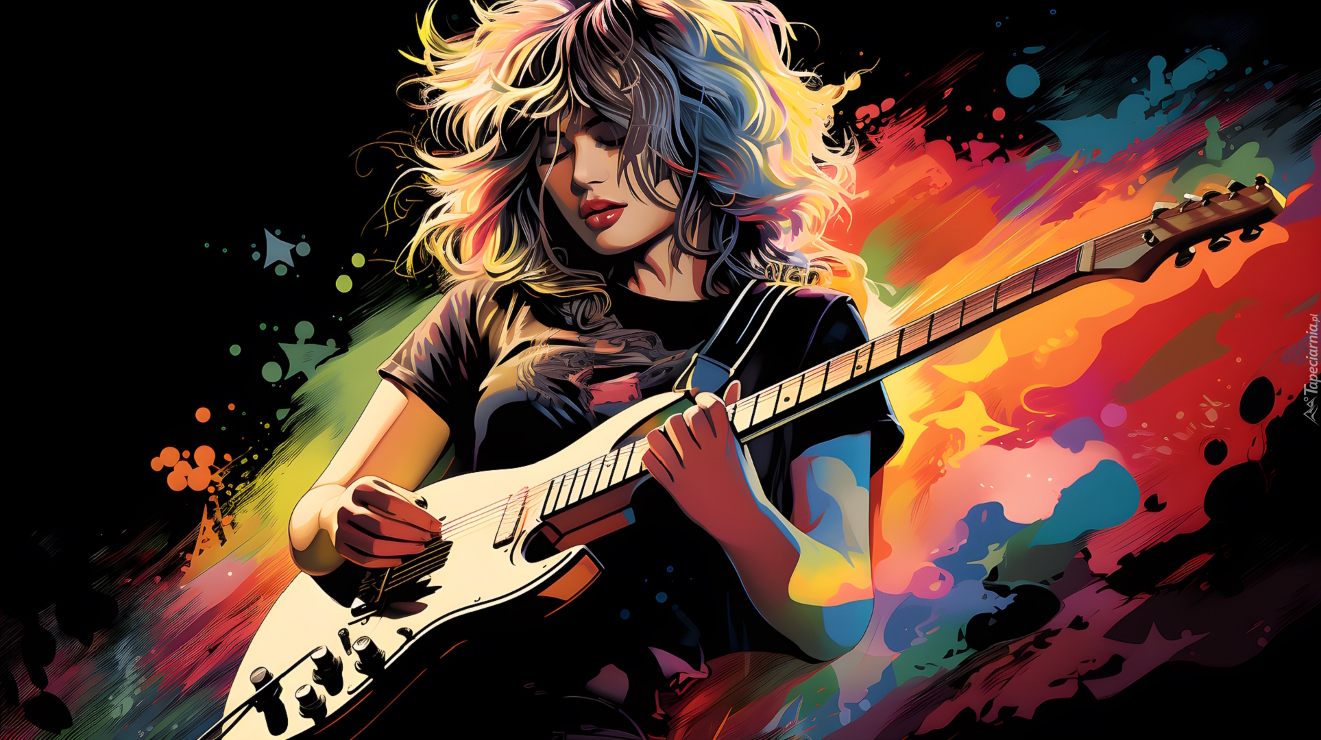 Edytor tapety: Kobieta grająca na gitarze w grafice