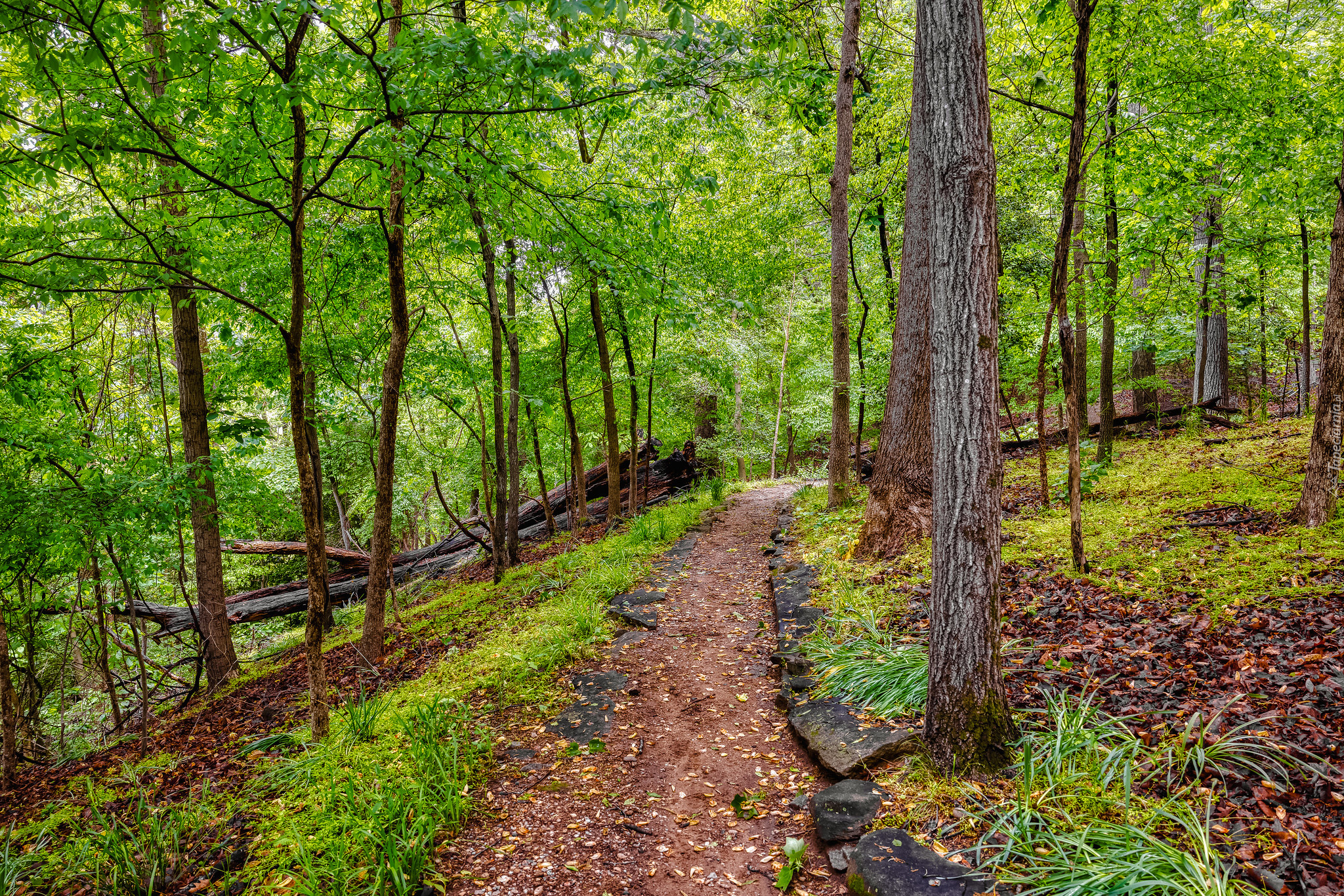 Edytor tapety: Ścieżka przez zielony las liściasty