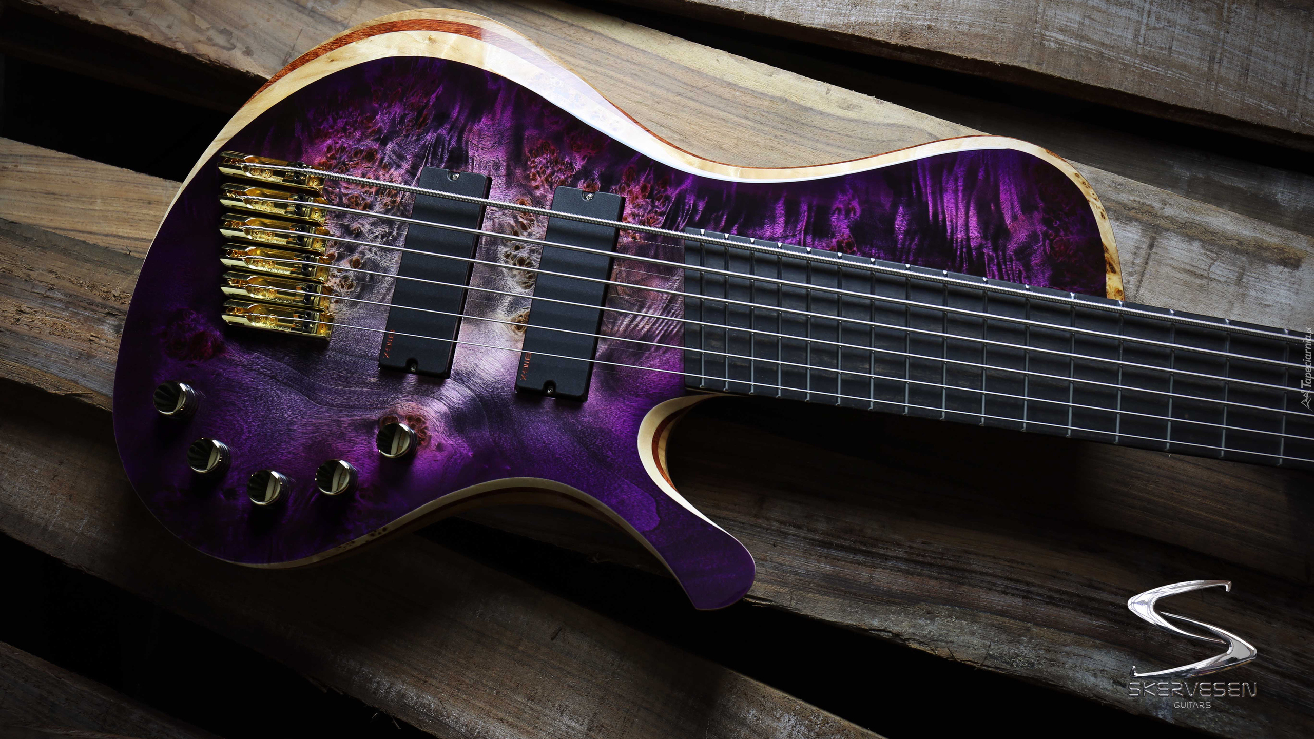 Edytor tapety: Fioletowa gitara basowa