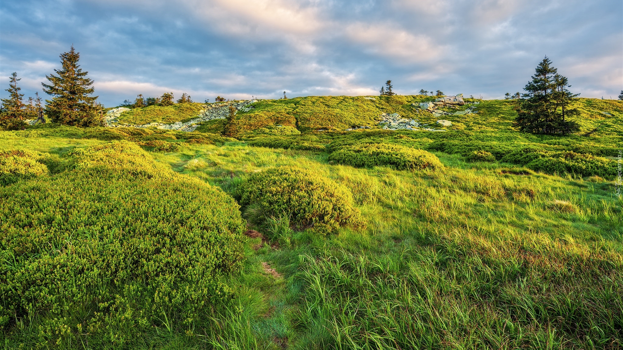 Edytor tapety: Wydeptana w trawie ścieżka na wzgórzu
